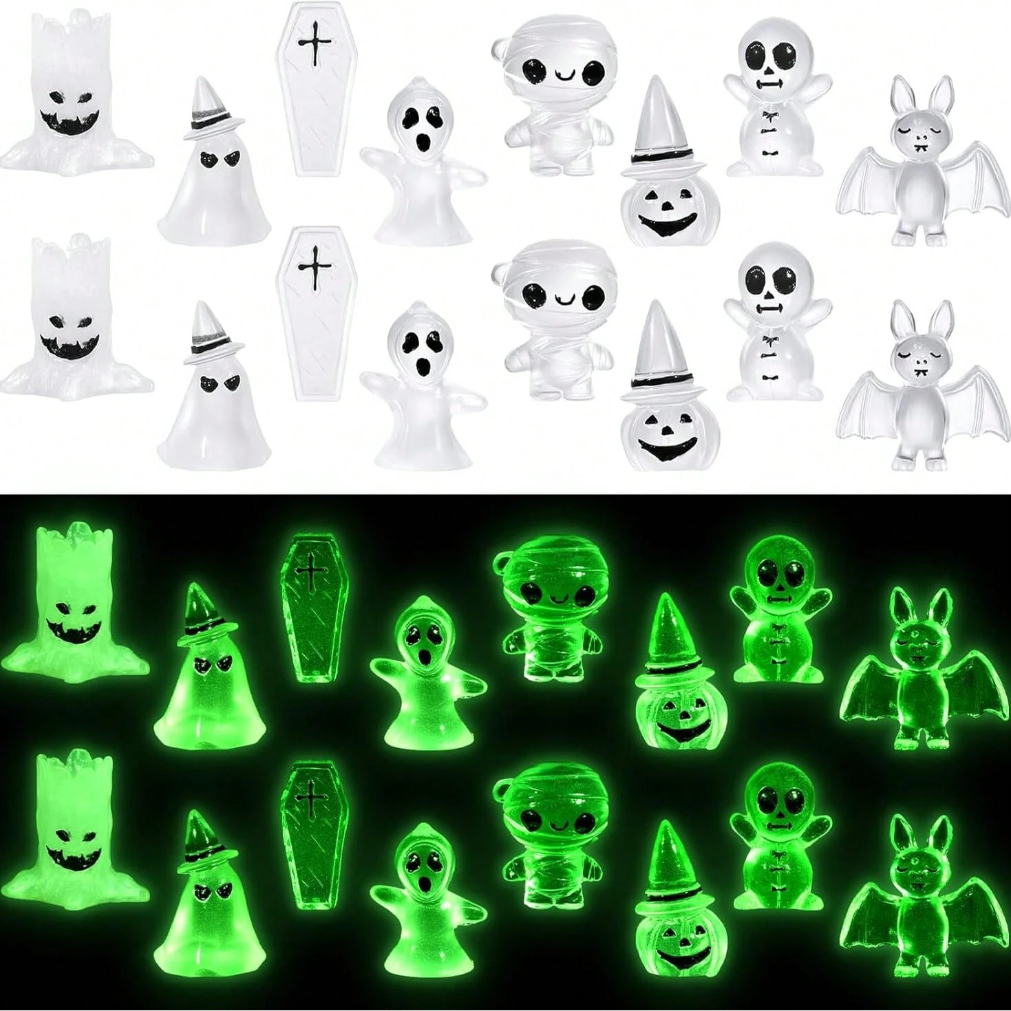 16 Pcs Miniatures Luminous Garden Figurines, Mini Resin Tombstone Pumpkin Ghost Figurine Figurine Statue Garden Decorations For Micro Landscape Accessories