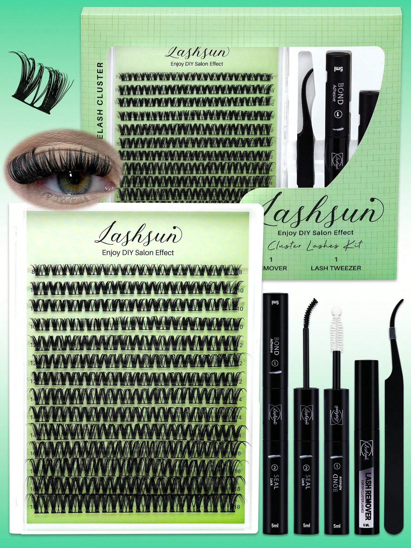 168PCS D Curl A13 Lash Clusters Kit 8-18mm Hybrid Volume Wispy Eyelash Clusters WideSpan DIY Eyelash Extension Kit Spiky Cat Eye Lashes Individual Fake Eyelashes Clusters Kit Ultra-Thin Black Band, Kit With Bond&Seal Lash Remover And Tweezers