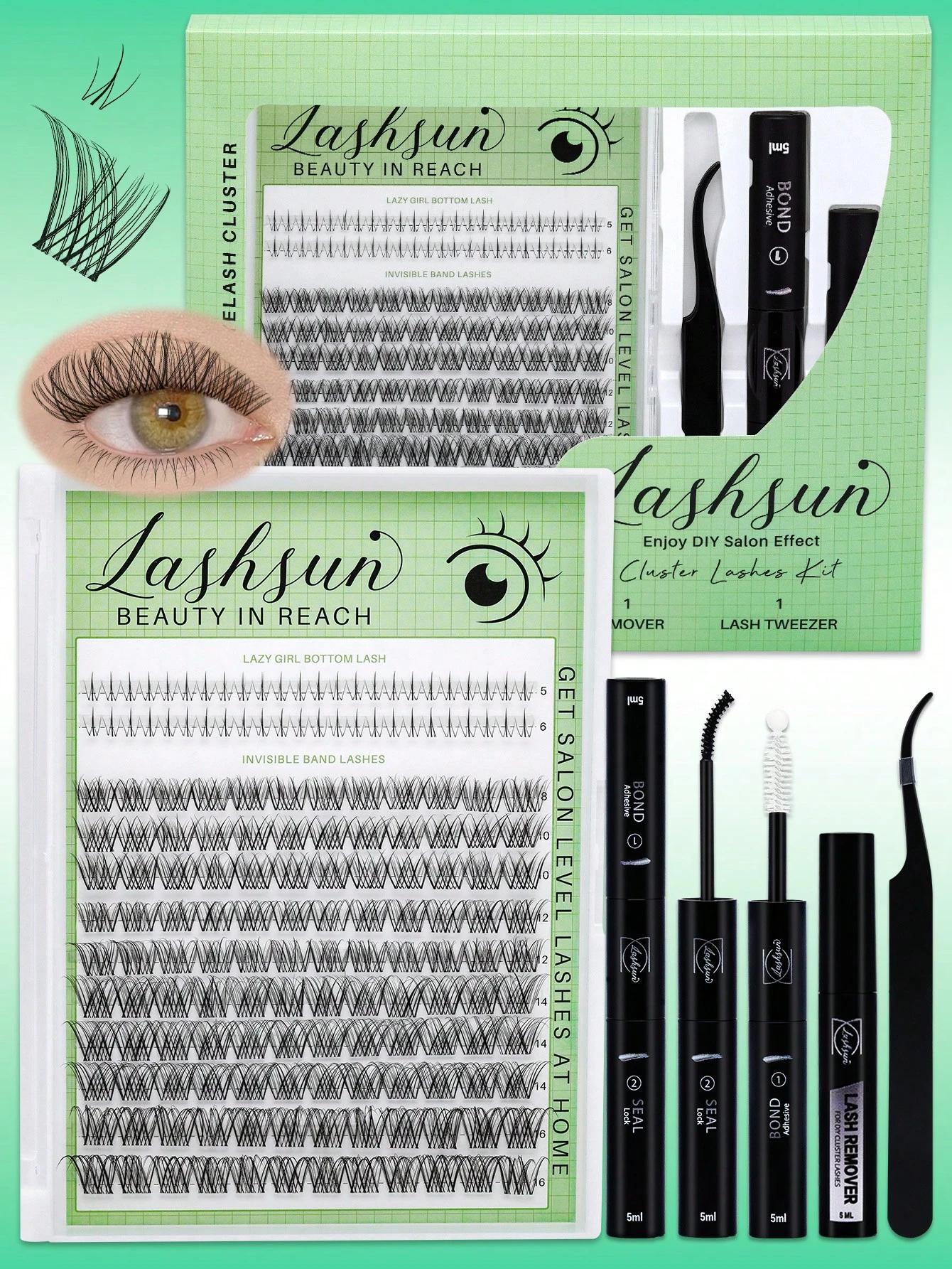 168PCS D Curl W61 Lash Clusters Kit 8-16mm With 5-6mm Bottom Lashes Wispy Natural Eyelash Clusters Kit D Curl -WideSpan DIY Eyelash Extension Kit Individual Eyelashes Clusters Kit Thin Invisible Lash Band, Kit With Bond&Seal Lash Remover And Tweezers