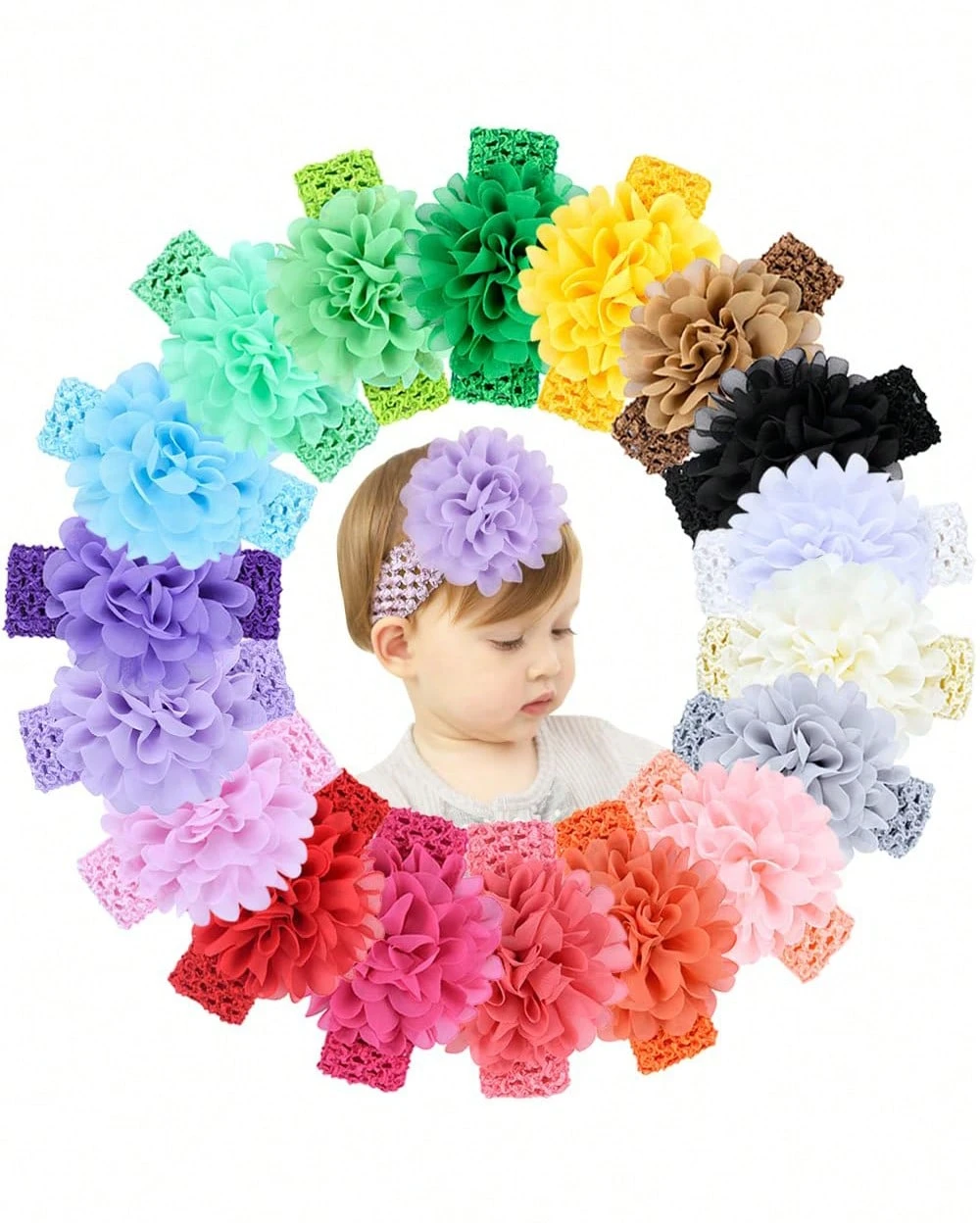 18pcs Baby Girls Headband Chiffon Flower Soft Stretchy Hair Band Hair Accessories For Baby Girls Newborns Infants Toddlers And Kids Love Valentine