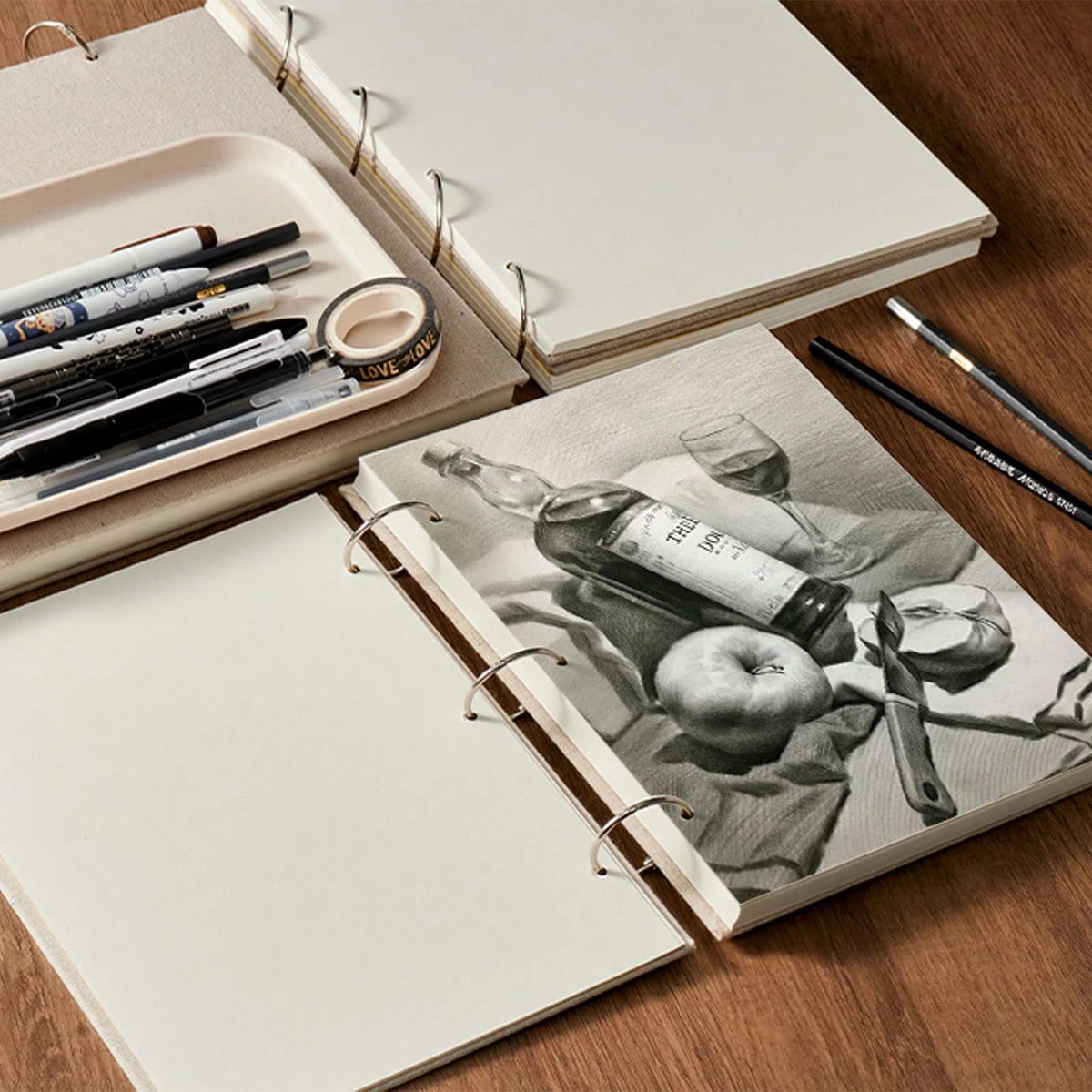1pc 60 Sheets Loose-Leaf Sketchbook, 16k/A4/8K Drawing Book With Detachable Hard Paper Cover, Art Sketchbook With Blank Inner Pages And Replaceable Refills, DIY Art Suitable For Artists And Adult Beginners, Essential Stationery For Students At The Beginning Of The School Years