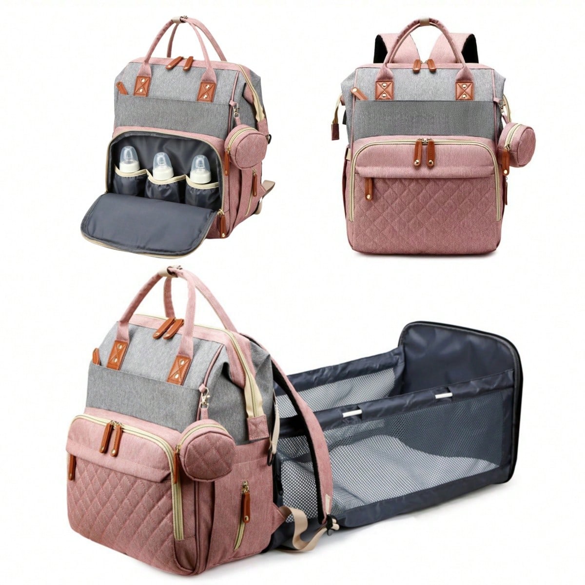 1pc Fashion Mummy Bag, Multi-Function Diaper Bag With Baby Bed Straps, Large Capacity Portable Multifunctional Diaper Bag, Multiple Compartments, Storage Bag For Home And Outdoor Use