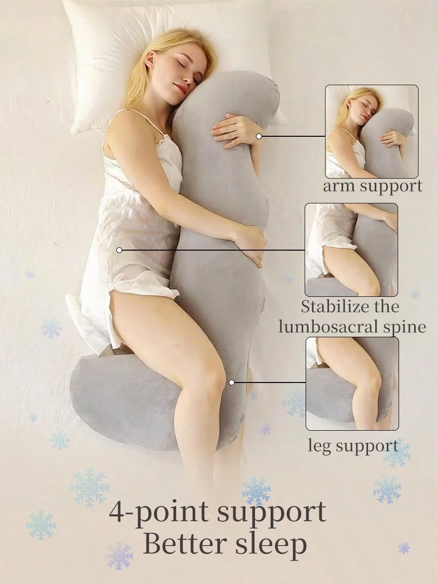 1pc Pillow, Grey Pregnant Woman Waist Pillow, Soft And Breathable Pillows, Suitable For Pregnant Women, Pregnancy Pillows For Side Sleeping, J-Shaped Maternity Body Pillow For Pregnancy, Soft Pregnancy Pillow With Jersey Cover For Head Neck Belly Support, For All Seasons, Washable