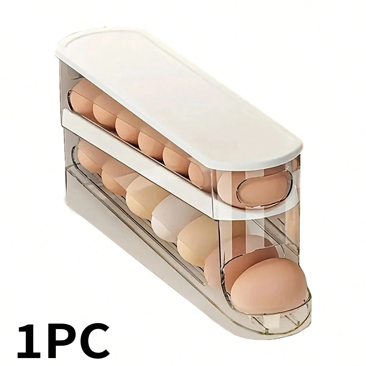 1pc Rolling Egg Storage Box, Double-Layer Automatic Egg Roller, Refrigerator Egg Dispenser, Keeps Eggs Fresh, Suitable For Refrigerator, Cabinet, And Storage Compartment, Kitchen Storage And Organization, Egg Rack