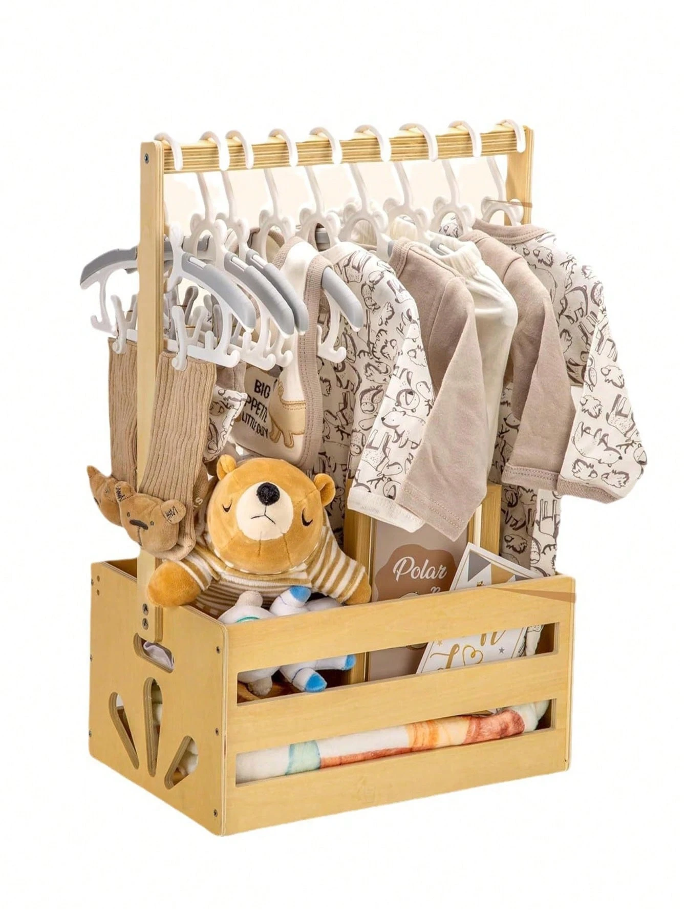 1pc Wooden Storage Basket With Handle,Shower Crate Closet Clothes Organizer Basket, Portable Clothes Hat Rack,Pregnancy Gifts For New Parents.