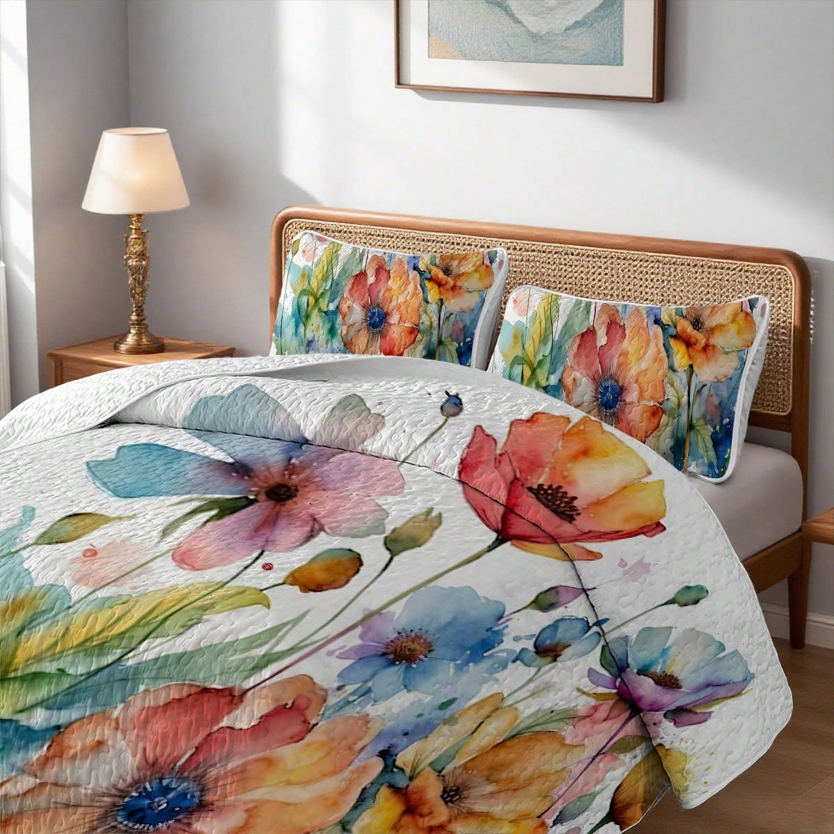 2/2/3 Pieces Colorful Floral Print Bedspread Set, 100% Polyester (1 Quilt + 1/2 Pillowcases), Machine Washable Summer Bedding Set, Breathable And Durable Quilt Set For Summer, Queen And King, Beautiful Room Decor, Suitable For All Seasons