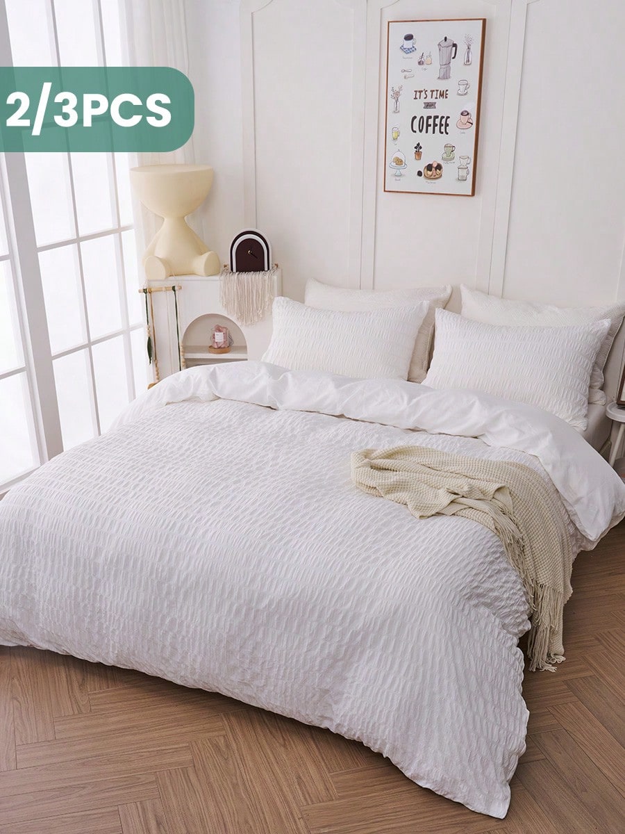 2/3 Pcs Duvet Cover Set, Bedding Set, Halloween Decor, Fall Decor, Solid Color Seersucker Duvet Cover Set, Soft, Skin Friendly And Elastic, Lightweight And Ailky Smooth, Washed Microfiber Duvet Cover, Room Decor, For All Seasons, Bedding Set, Fits Twin/Full/King/Queen Size Bed, Halloween, 1pc Duvet Cover And 2/1pc Pillowcase, Holiday Gifts