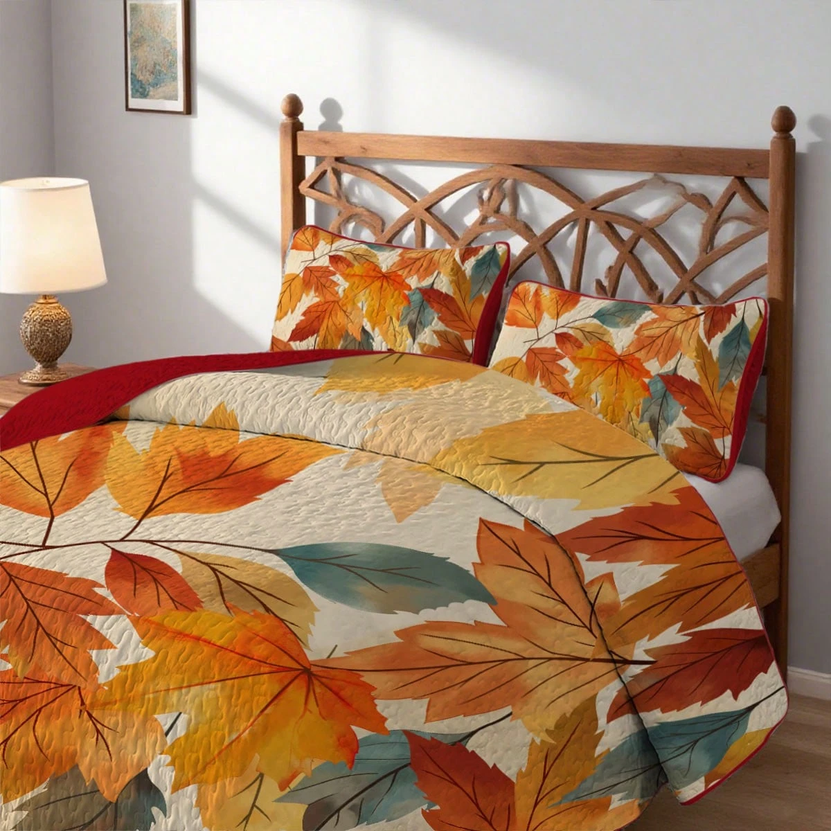 2/3 Pcs Fashion Maple Leaf Print Bedspread Set, Including 1 Quilt + 1/2 Pillowcase, Full/Queen, Comfortable, Breathable And Durable Bedding Set, Non-Slip Quilt Set, Perfect For Your Room Decor, Ideal Room Decor, Holiday Gift, Machine Washable