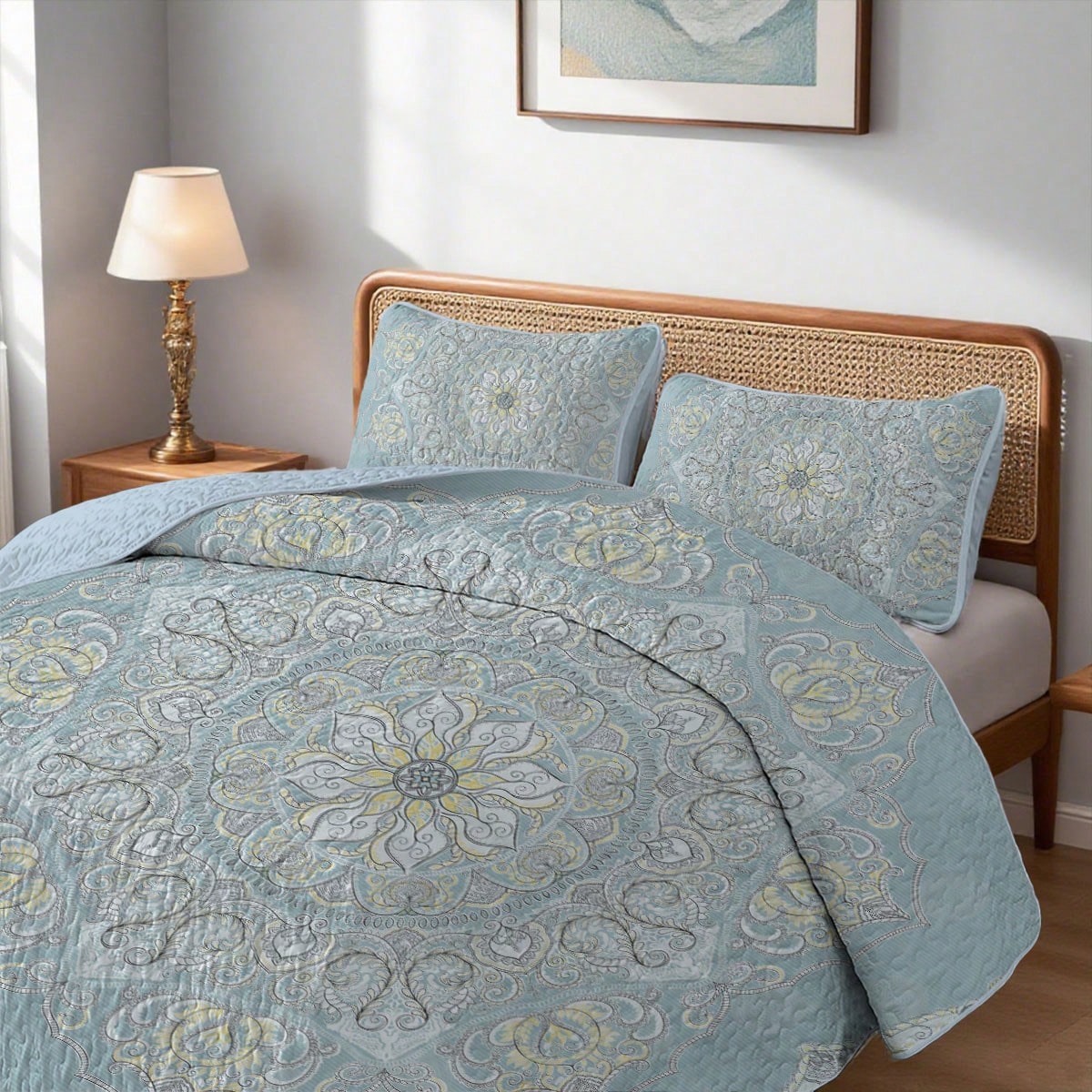 2/3 Pieces Luxury Boho Flower Print Pattern Quilt Set, 100% Polyester Summeer Bedspread Set, ( 1 Quilt + 1/2 Pillowcases), Durable And Breathable Bedding Set For Hot Summer, Full/Queen, Easy To Clean And Machine Washable, Room Decor
