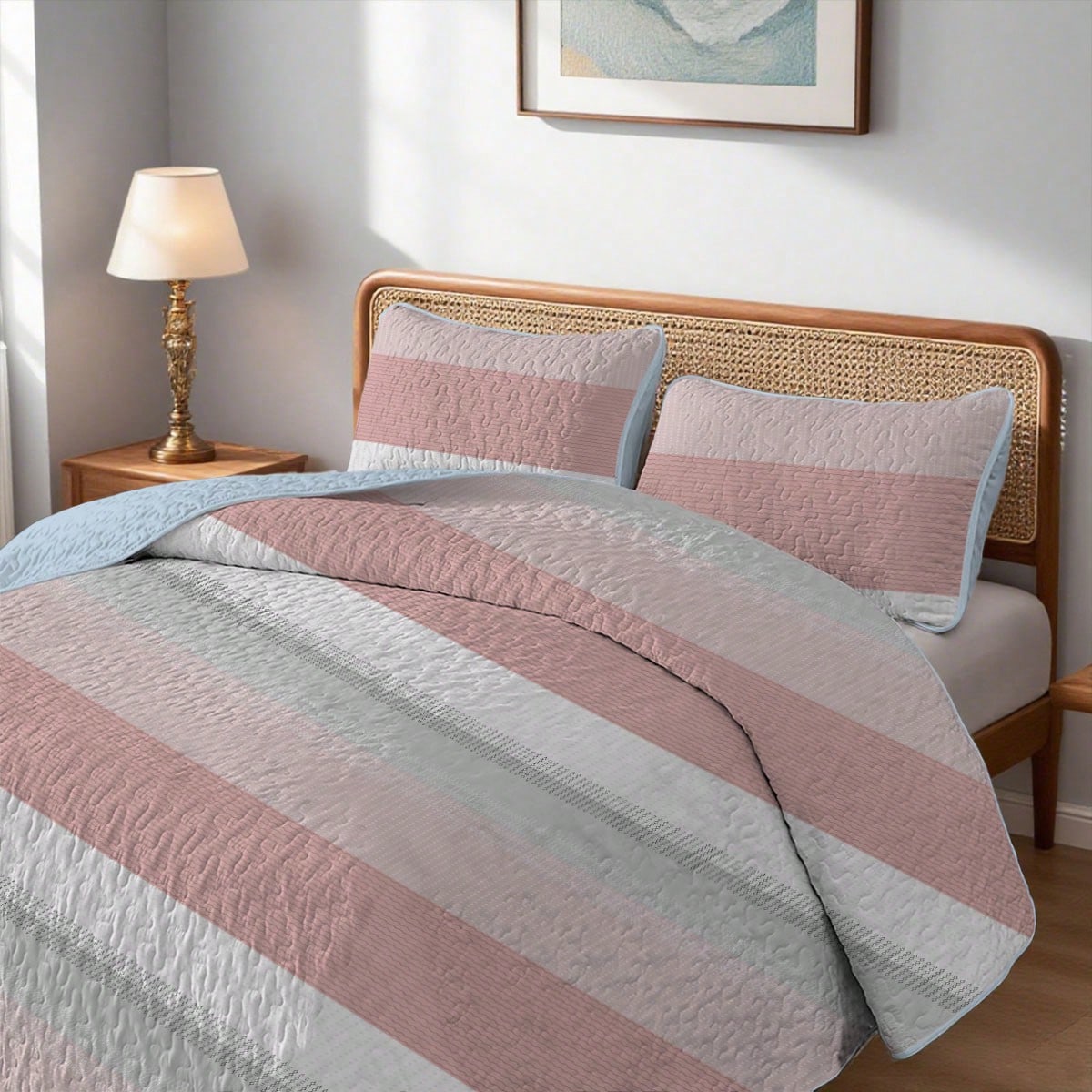 2/3 Pieces Pink Striped Printed Quilt Set, 100% Microfiber Printed Summer Bedding Set(1 Quilt + 1/2 Pillowcases), More Durable And Non-Slip Bedding, Universal Bedspread Set, Suitable For Full/Queen And Cal King-Size Beds, Room Decor