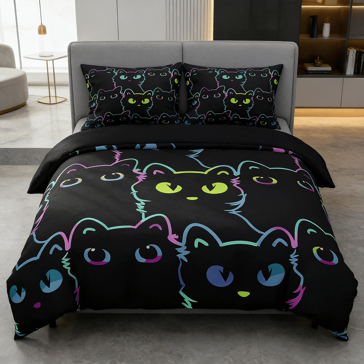 2/3Pcs Neon Cat Pattern Bedding Set, Twin/Full/Queen/King Sizes, 1 Comforter With 1/2 Pillowcases, No Inner Comforter/Quilt & No Filling, All-Season, Soft Durable, Machine Washable, Bedroom Decoration & Holiday Gift