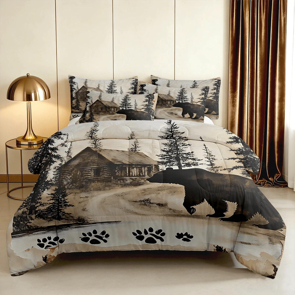 2/3pcs Rustic Cabin Bear Print Comforter Set (Twin, Full, Queen, King Sizes), 1 Comforter + 1/2 Pillowcases Breathable All Season, Keep Warm Soft Skin Friendly, Durable Machine Washable, Perfect Family Gift