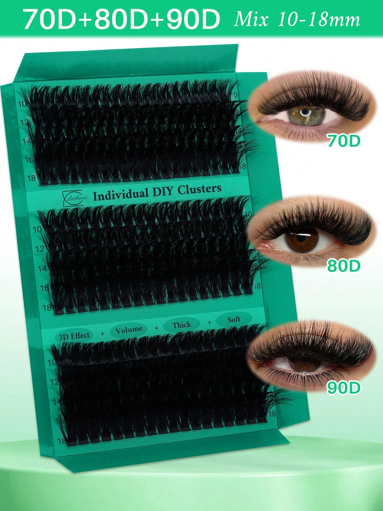 270pcs 70D80D90D D Curl D Individual Eyelashes Mixed 10-18mm Volume 3D Effect Cluster Lashes Soft And Comfortable False Eyelashes Long-Lasting Lashes At Home For Daily Life&Dates And Party
