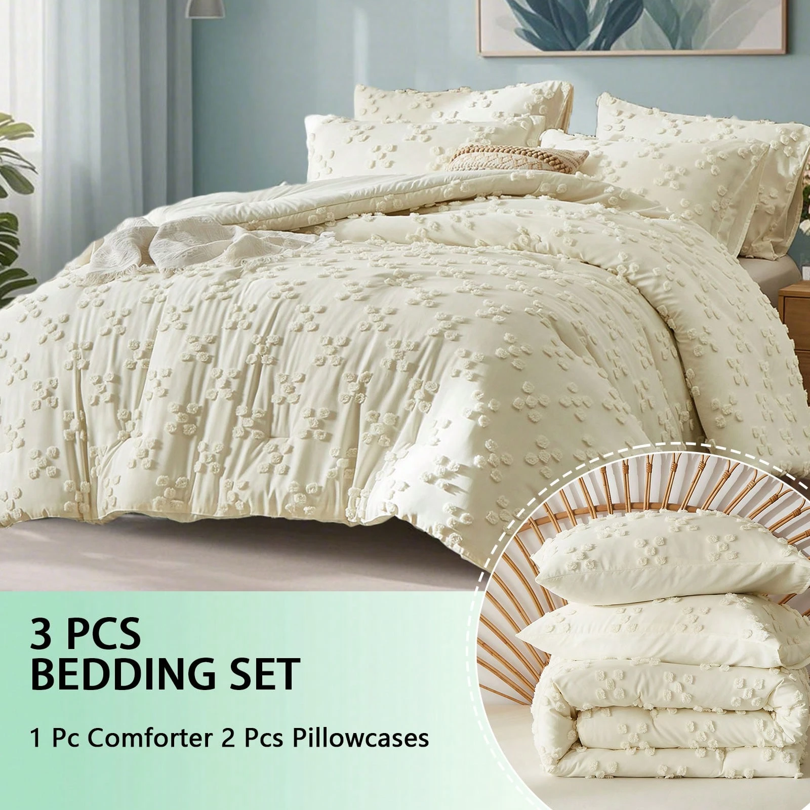 3-Pcs Tufted Comforter Sets Queen, A Soft And Comfortable Summer Bedding Set, Including 1 Comforter, 1/2 Pillowcases, Hotel Bedroom Room Decoration, Suitable For All Four Seasons, Festival Gifts.