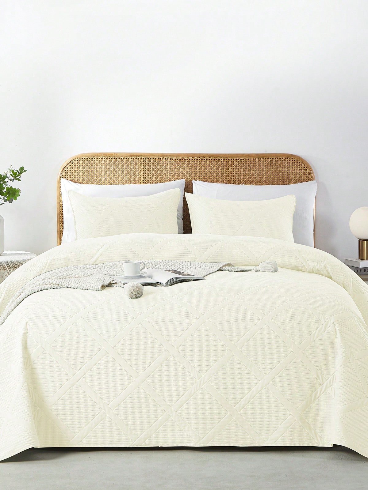 3 Pieces Of Solid Color Quilt Set With Creative Square Pattern Design. Suitable For All Seasons, Soft And Comfortable Bedding Set, (Include 1 Quilt + 2 Pillowcases).