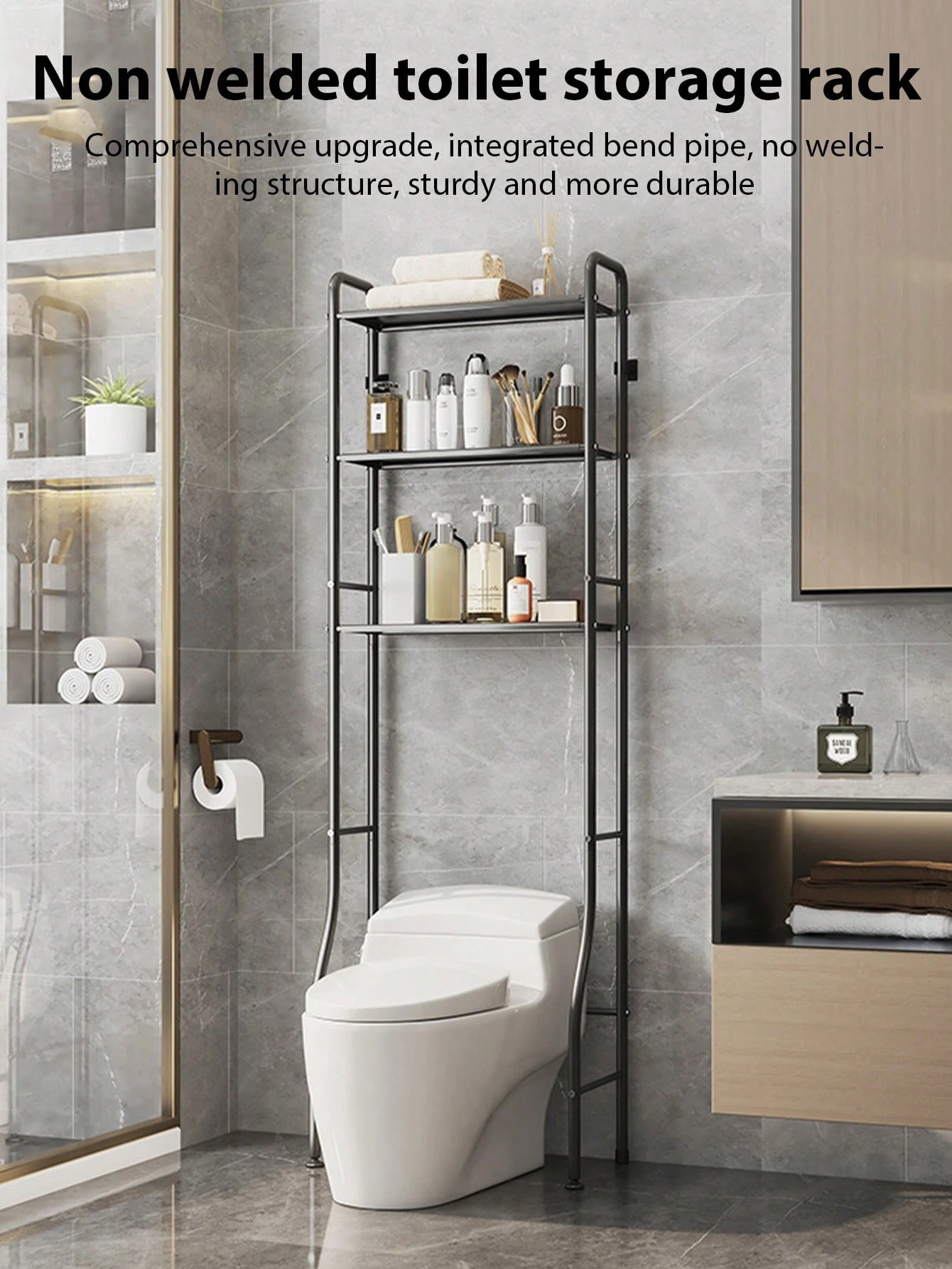 3-Tier Heavy-Duty Metal Freestanding Bathroom Storage Shelf With Toilet Paper Holder & Hanging Rail – Space-Saving Over-Toilet Organizer, Easy Assembly, Black Modern Design For Small Bathrooms, Laundry Rooms, Powder Room – Sturdy Floor Standing Shelving Unit, Multi-Functional 3-Layer Metal Rack With Roll Paper Holder And Hooks, Minimalist Style, No Drilling Required, Durable Metal Frame, Storage Bathroom, Bathroom Shelving And Organizing, Toilet Shelf