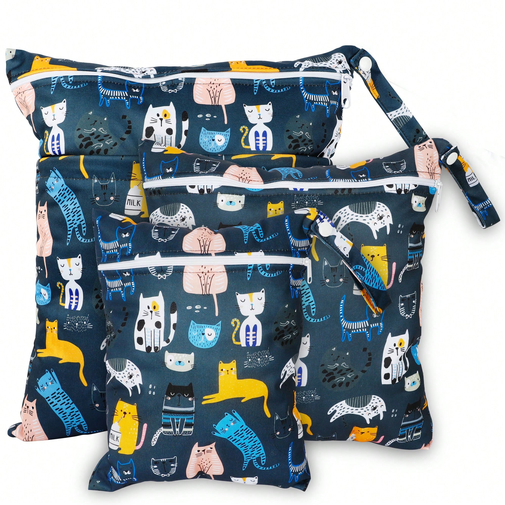 3Pcs Cloth Diaper Wet Dry Bags Waterproof Reusable With Two Zippered Pockets Travel Beach Pool Daycare Soiled Baby Items Yoga Gym Bag For Swimsuits Or Wet Clothes-Animal