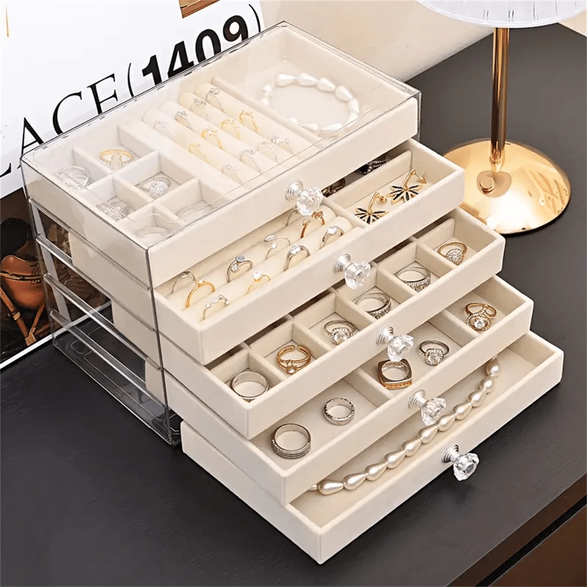 Be the first to review “5-Tier Jewelry Organizer Jewelry Box – Stackable Drawer Storage For Rings, Earrings, Necklaces & Bracelets – Large Capacity Desktop Display Case Valentine Day” Cancel reply