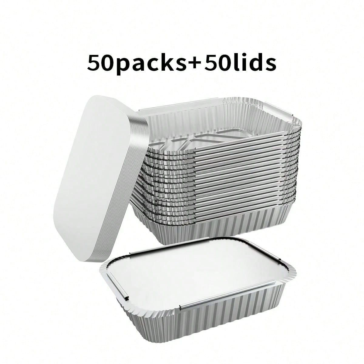 50pcs Square Aluminum Foil Baking Trays, Disposable High-Temperature Resistant Frozen Food Containers, Aluminum Foil Baking Trays With Lids, Evenly Heated, Can Choose The Size That Suits Oneself, Suitable For Baking, Meal Preparation, Camping Barbecue, Parties And Holiday Gatherings, Essential For Baking, Preferred For Home And Outdoor Cooking,