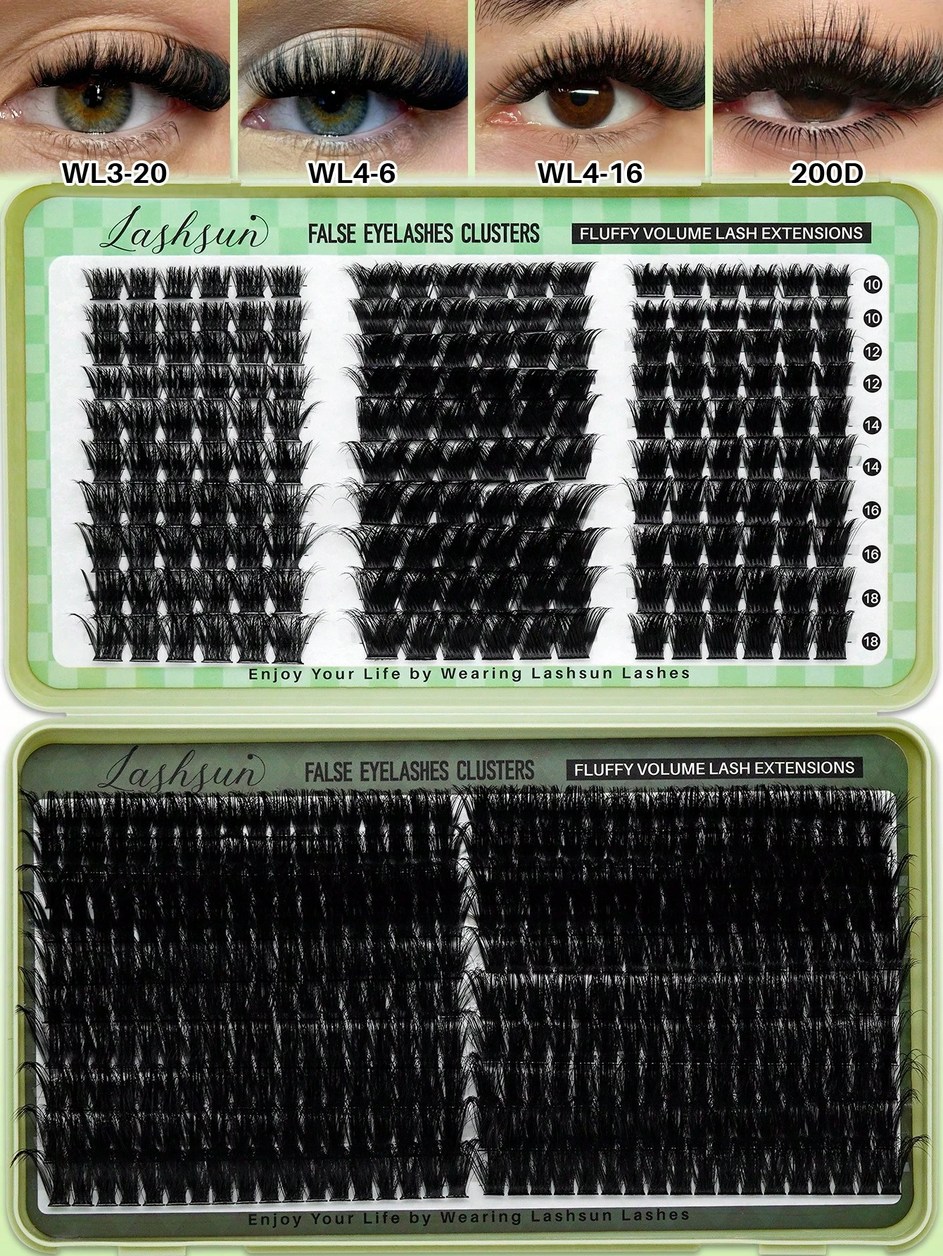 540pcs D Curl 4 Styles WL3-20+WL4-6+WL4-16+200D Mixed 10-18mm/14-22mm Fluffy Volume Individual Lashes Soft And Comfortable False Eyelashes Long-Lasting Lashes At Home For Daily Life&Dates And Party