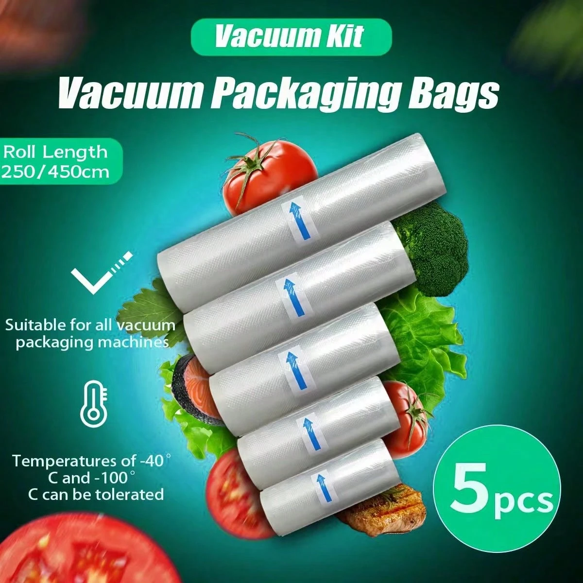 5pcs Vacuum Sealed Bags, Suitable For Restaurant Quality Preservation, Essential For Meat, Vegetables, Fruits, And Kitchen Storage. Transparent Storage And Easy-To-Use Design, Compatible With Food Vacuum Sealing Machines, Kitchen Storage Bags