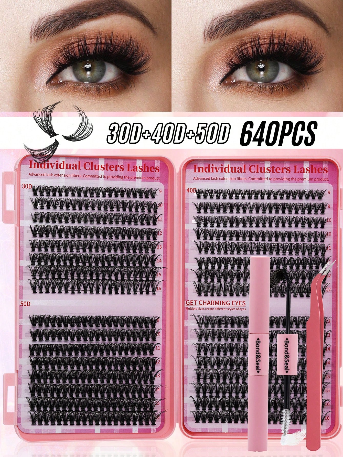 640PCS D Curl 30D40D50D Mix 9-16mm Individual Lashes , Soft And Comfortable False Eyelashes Long-Lasting Lashes Kit With Lash Bond&Seal And Lash Tweezers, Perfect For DIY At Home, Beginner Friendly