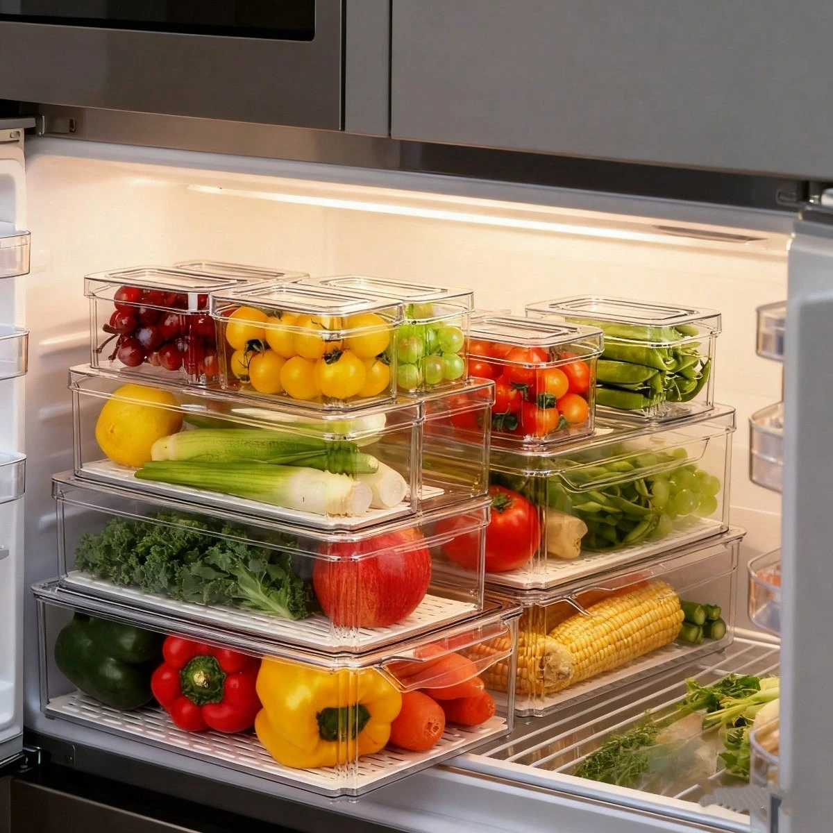 7/14 Pack Stackable Refrigerator Organizer Bins, Food Organizer Set With Lids,Space-Saving Storage Container Suitable For Fruit,Vegetables And Drinks,Perfect Gift For Graduation,Party,Birthday,Wedding.