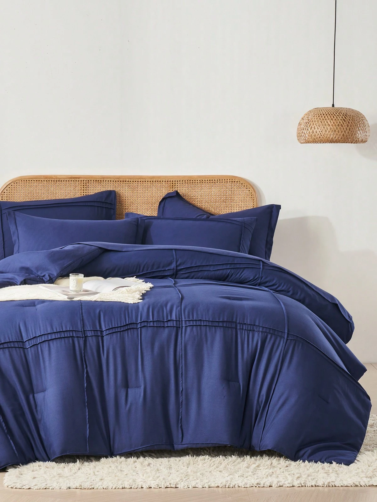 7 Piece Bed In A Bag Bed Comforter Set Queen, Chic Line Grid Comforter , Sheet And Pillowcase Set, Soft Microfiber, Comfortable And Warm Bedding Set, Bedroom Decor For All Seasons, Ideal Gift