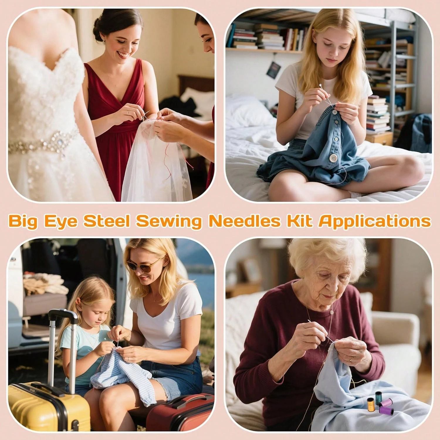 85PCS Big Eye Steel Sewing Needles Kit, Portable Needle And Thread Kit For Sewing, Sewing Accessories With 40 Thread, 25 Big Eye Sewing, Kit For Teen Girls Mom Grandma, Household, DIY, Travel, Wedding