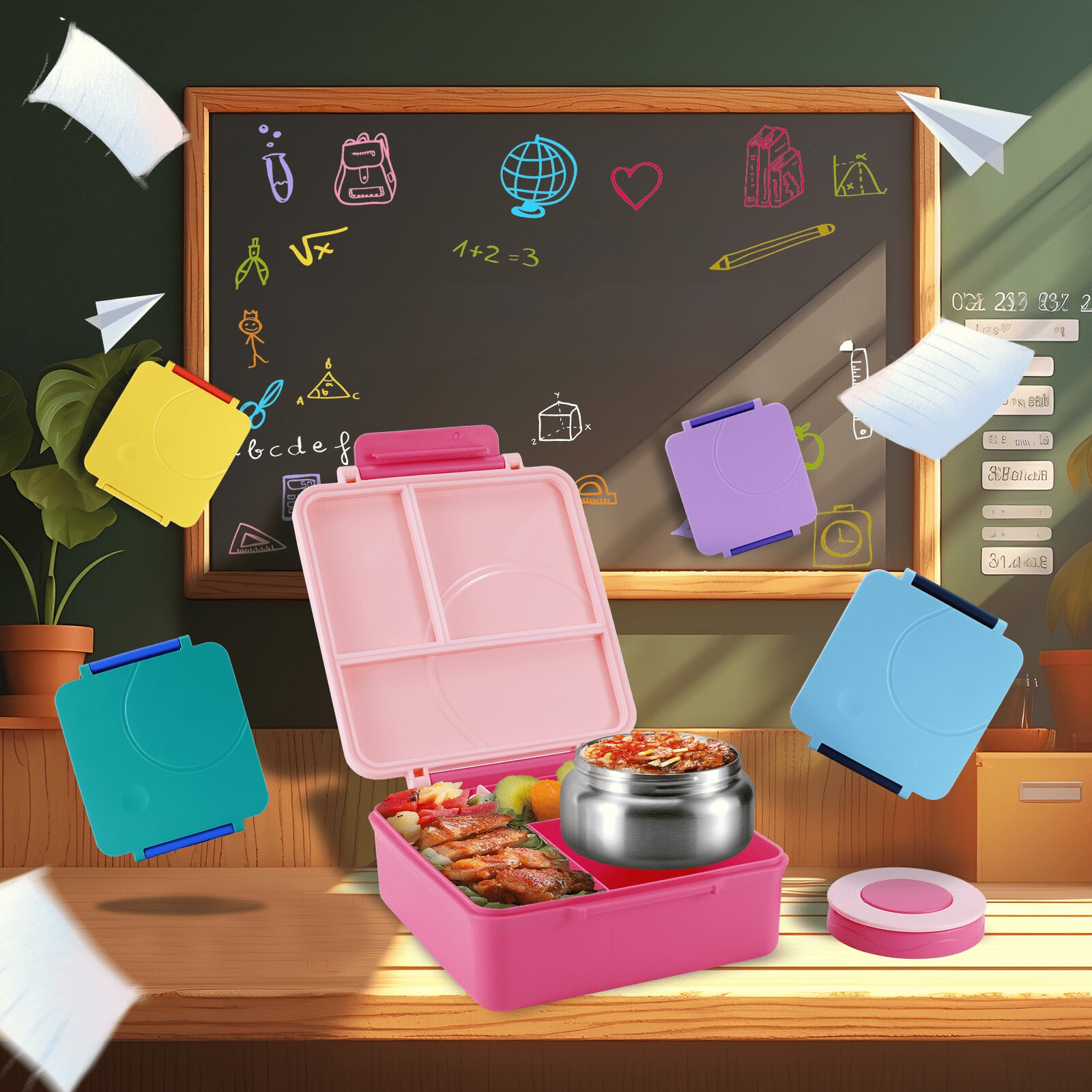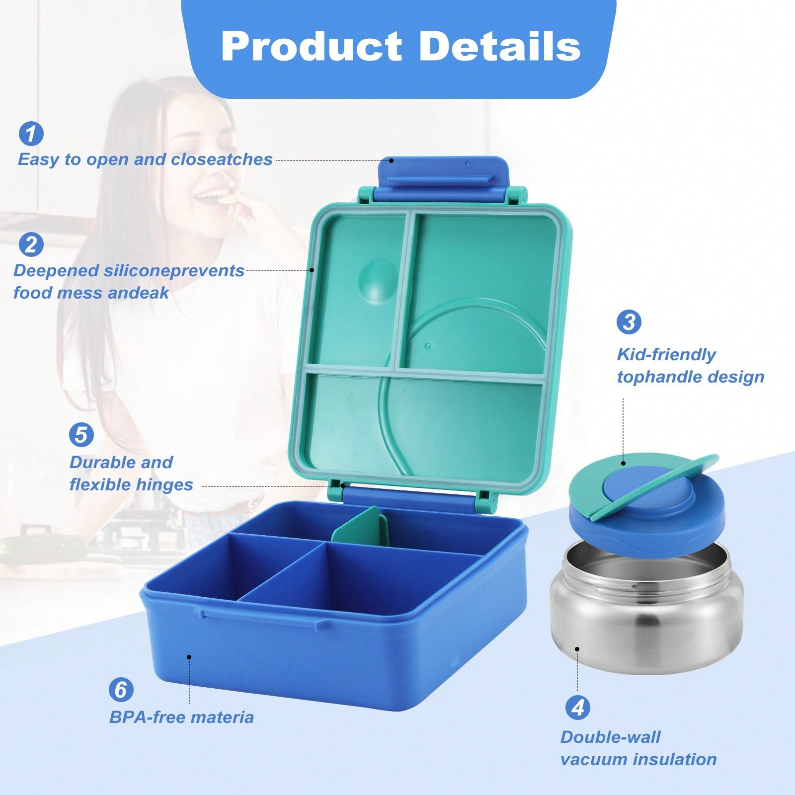 8oz Soup Jar, Leak-Proof Bento Box, 4-Compartment Design, Thermal Insulation, Suitable For School, Travel, Home Decor, Christmas Gift
