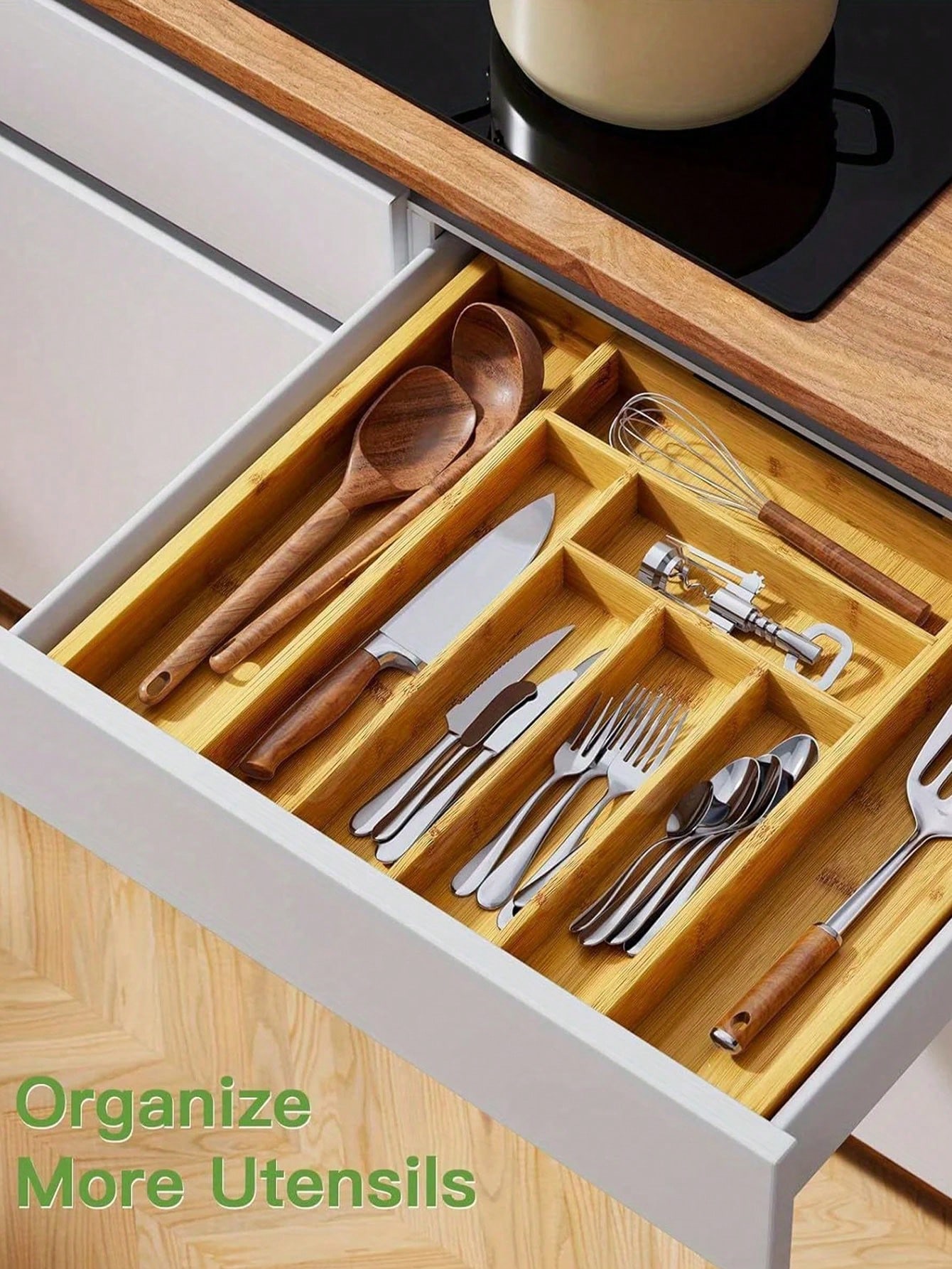 Adjustable Bamboo Drawer Organizer,Spoons Forks Knives Holder Storage Dividers, Expandable Utensil Organizer For Kitchen Drawers Suitable For Kitchen, Bedroom, And Living Room,Perfect Gift For Graduation,Party,Birthday,Wedding.