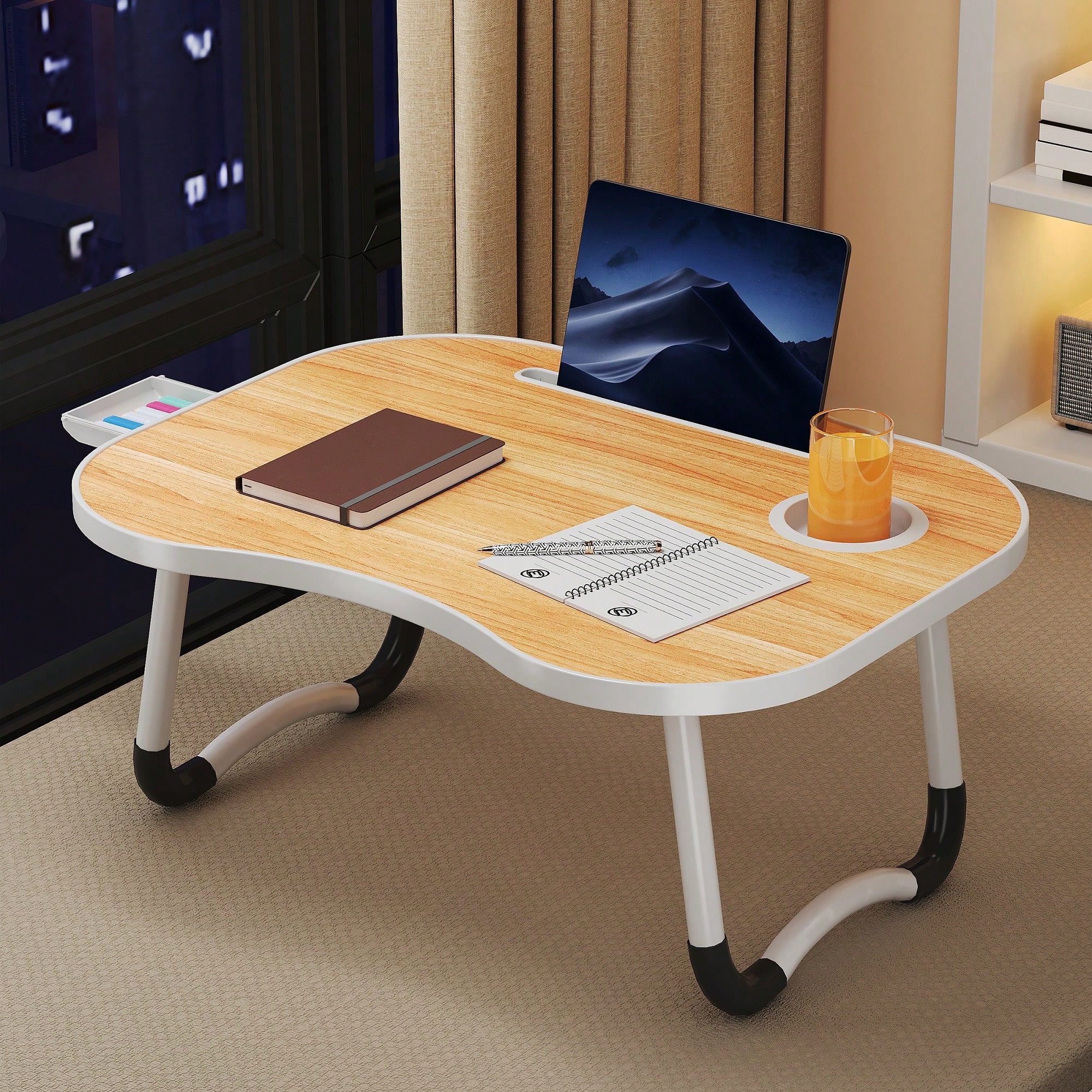 DYJ DAYIKA-S Laptop Bed Table, Portable Foldable Laptop Bed Table With Storage Drawers And Cup Holders, Laptop Stand Tray Table, Floor Table, Dish Tray, Suitable For Eating, Reading, And Working