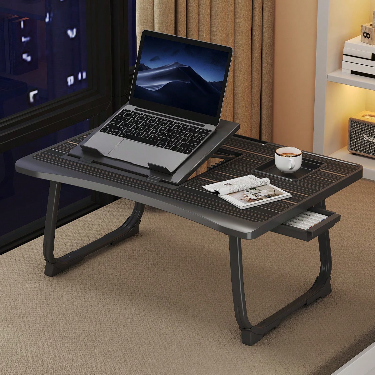 DYJ DAYIKA-S Portable Foldable Computer Table With Side Drawers, Computer Table With Cup Holder, Suitable For Beds, Sofas, Outdoor Scenes, Can Be Used For Working On The Bed, Drawing And Painting, Dining, Etc.