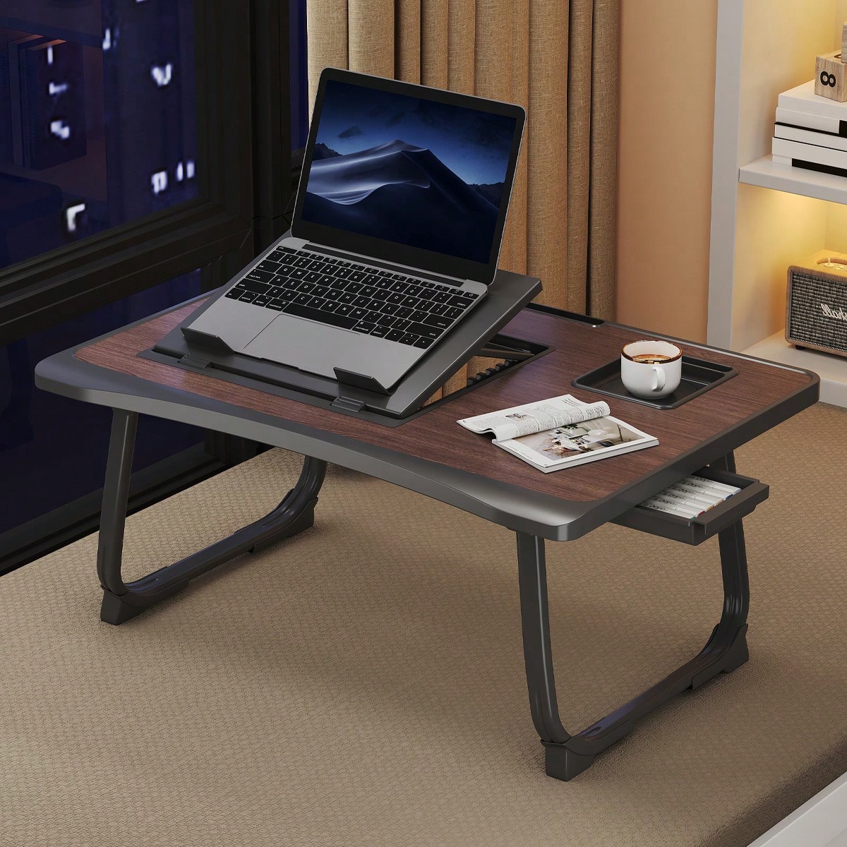 DYJ DAYIKA-S Portable Foldable Computer Table With Side Drawers, Computer Table With Cup Holder, Suitable For Beds, Sofas, Outdoor Scenes, Can Be Used For Working On The Bed, Drawing And Painting, Dining, Etc.