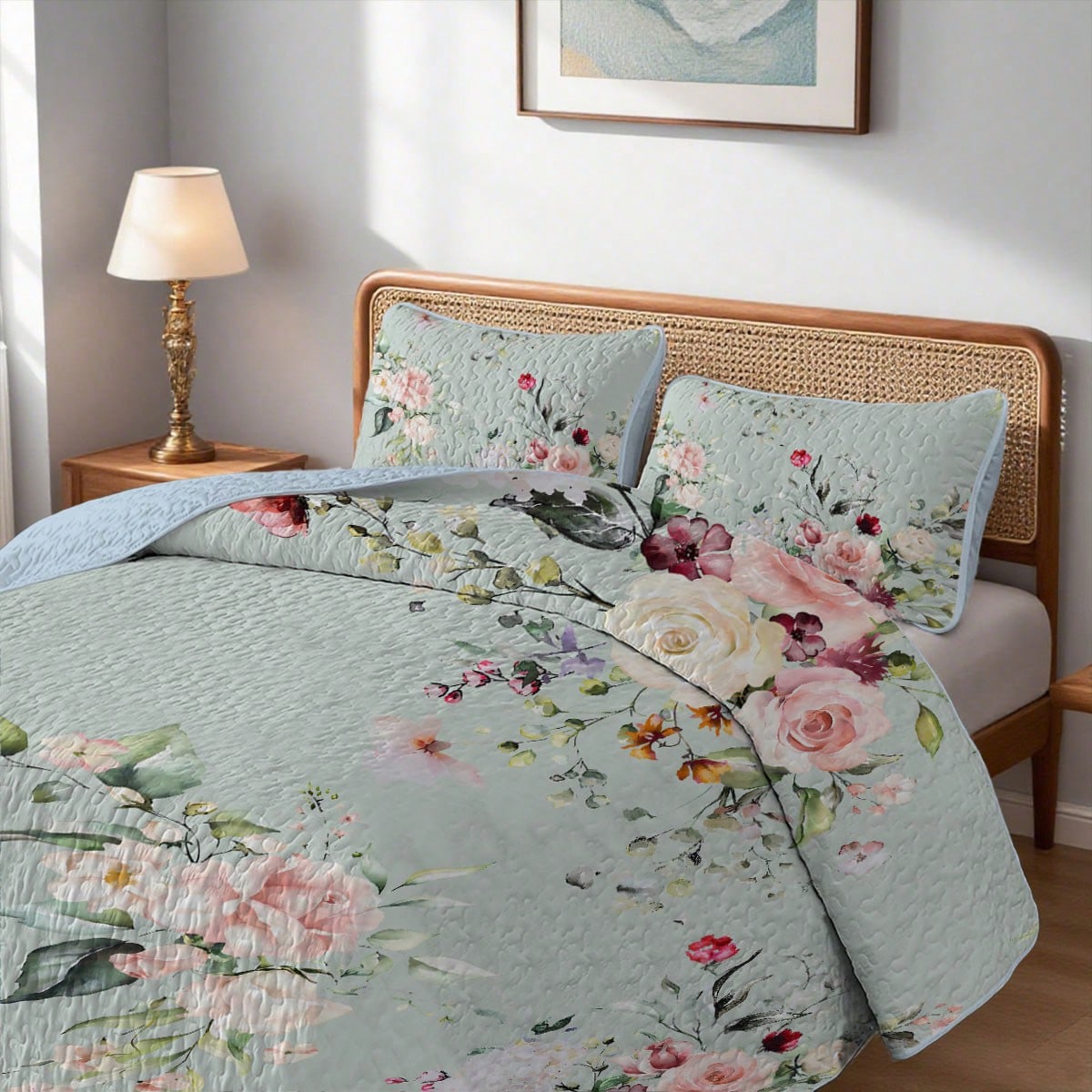 Floral Print Bedspread Set 2/3 Pcs, Including 1 Quilt +1/ 2 Pillowcases, 100% Microfiber, Breathable And Comfortable, Easy To Clean And Machine Washable Summer Quilt Set, Lisianthus Flower Print Bedding Set, Full/Queen, Elegant Room Decor