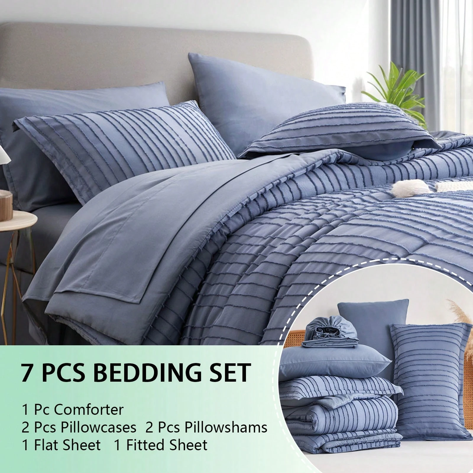 Grey Tufted Comforter Sets Queen, 7 – Piece Light Grey Tufted Summer Bedding Set, Down Instead Of Quilt Fluffy Bed Set, Gift Choice, All Season, Hotel Room Decor, 4 Pillowcases, 1 Flat Sheet, 1 Fitted Sheet, And 1 Comforter