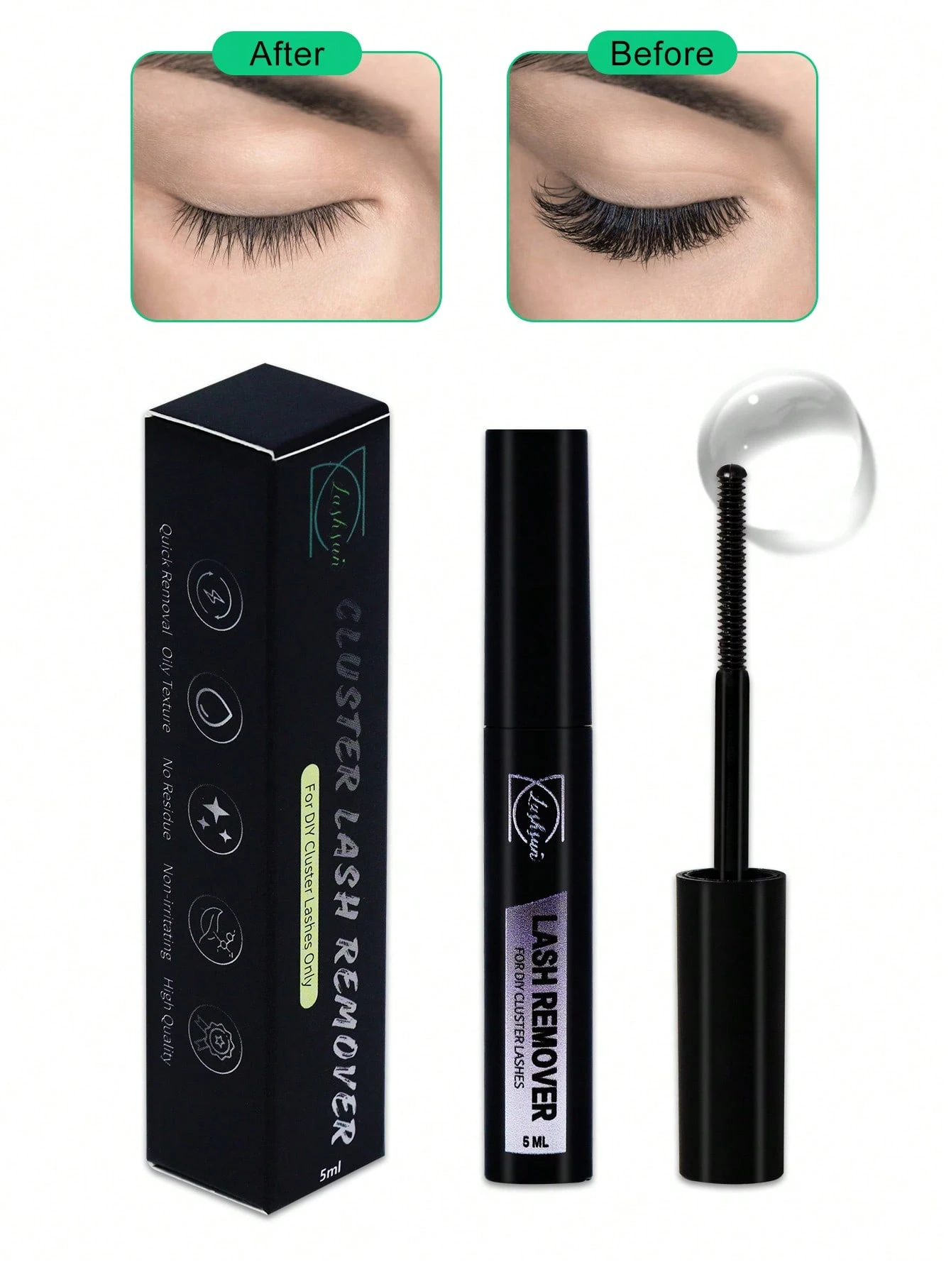 Lashsun Lash Glue Remover For Cluster Lash, Quick-Dissolving False Eyelash Remover Oil Lash Remover Gentle, 5ML Lash Cluster Remover At Home Use, Easy Removing Lash Bond And Seal (Remover, 5ml)