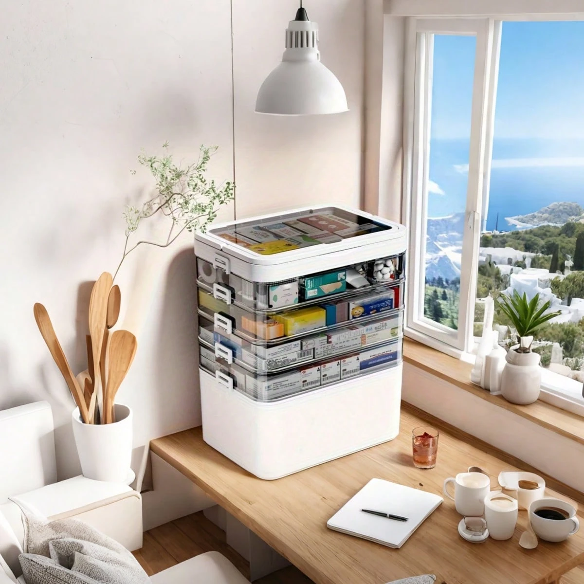 Medicine Storage Box – Portable Family Emergency Organizer With Snap Closure, Made Of Durable Plastic, Rectangular Home Medicine Cabinet With Multiple Compartments, Carrying Case For Family Emergency First Aid Kit, Storage Container With Flip-Top Lid – Small Family Emergency Organizer, Snap Closure, Durable Plastic, Multi-Layer Waterproof Box, Storage Boxes For Organizing