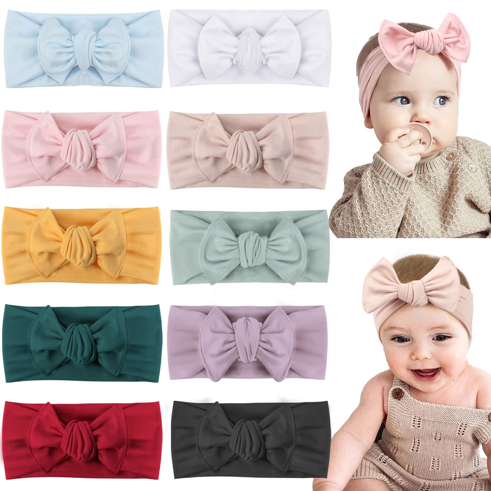 Oaoleer 10 PCS Baby Nylon Headbands Hairbands Hair Bow Elastics Handmade Hair Accessories For Baby Girls Newborn Infant Toddlers Kids