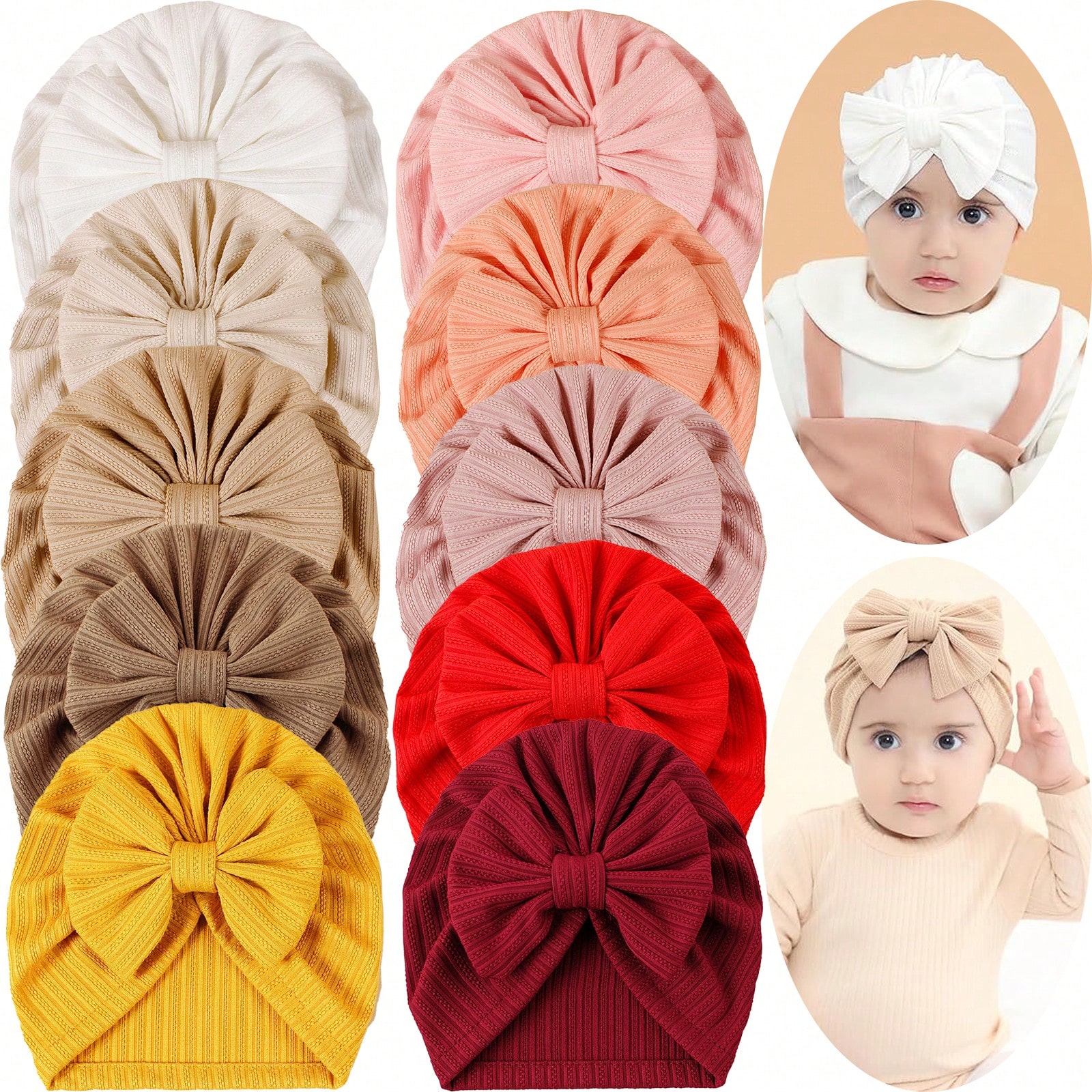 Oaoleer 10pcs Cute Bowknot Baby Turban Hat For Newborn Infant Toddler Kids Girls Knot Beanies Headwraps Hair Accessories