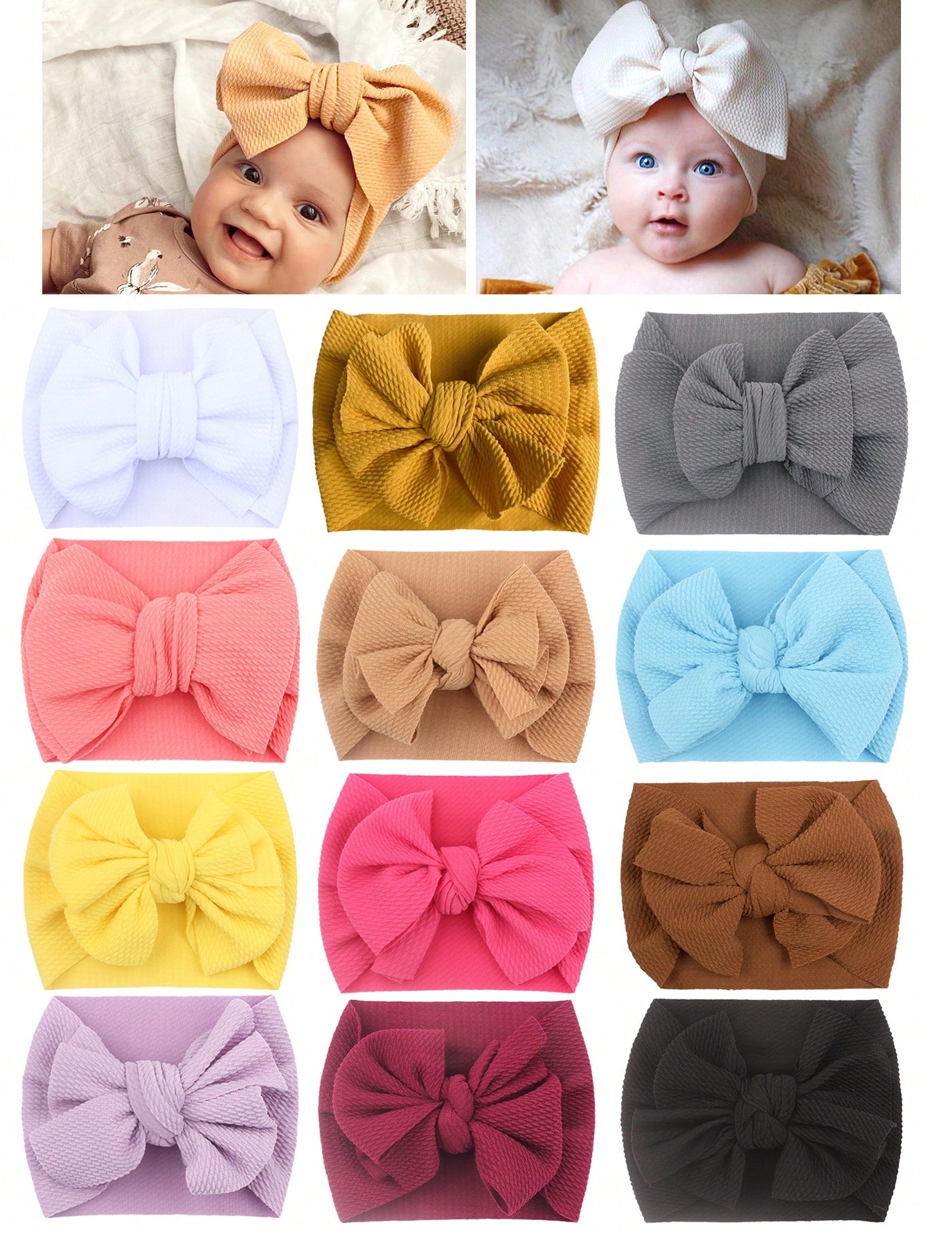 Oaoleer 12 Pack Solid Big Bow Stretchy Headbands Hair Accessories For Baby Girls Toddlers Kids