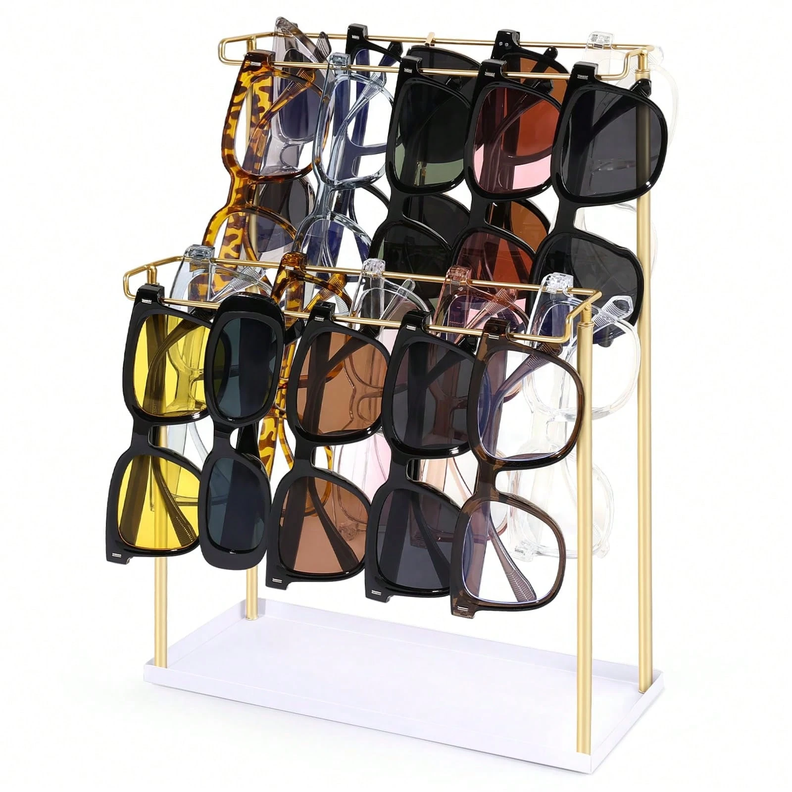 Oaoleer 1PC 2 Tier Sunglass Organizer Storage With Tray, Sunglasses Display Holder Stand With Tray For Desk, Dresser, Vanity, Tabletop, Nightstand And Home Decor