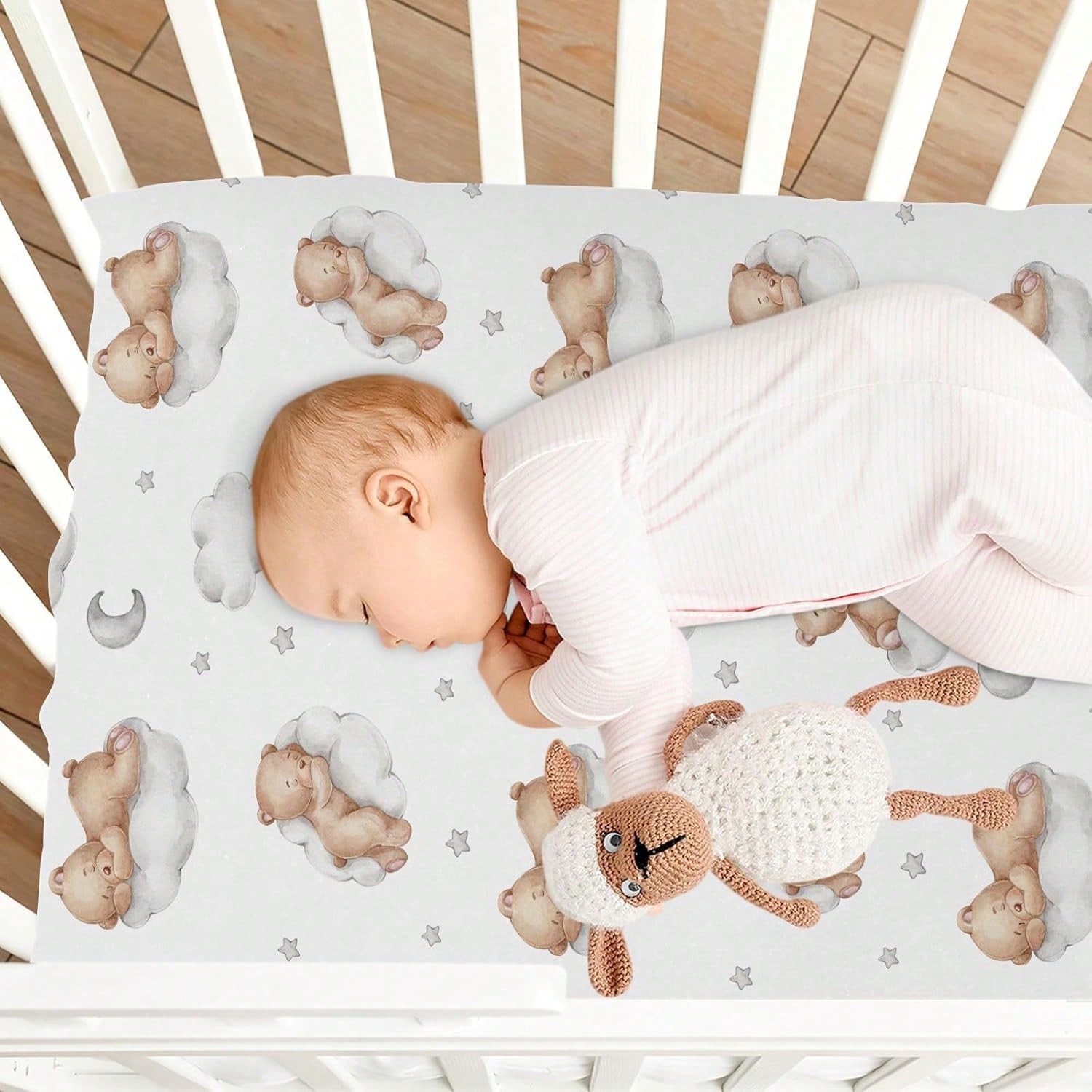 Oaoleer 1PC Crib Sheets For Boys & Girls, Teddy Bears Clouds Pattern, Neutral, Mini Crib Mattress Sheets, Fitted