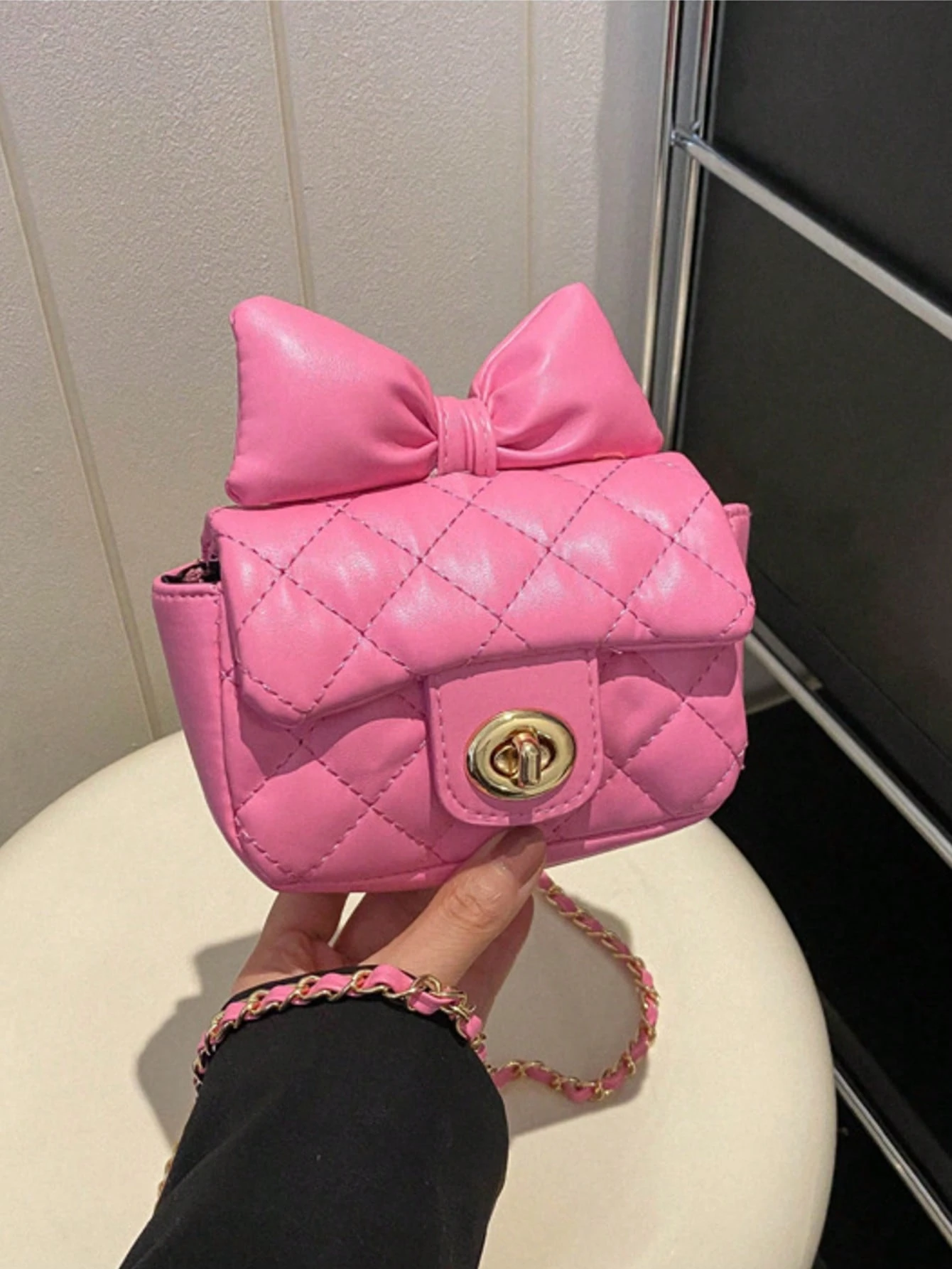 Oaoleer 1PC Quilted Crossbody Bags, Cute Bow Purses For Teens Small Preppy Purse Mini Bag With Chain Strap, Birthday Gift For Girl