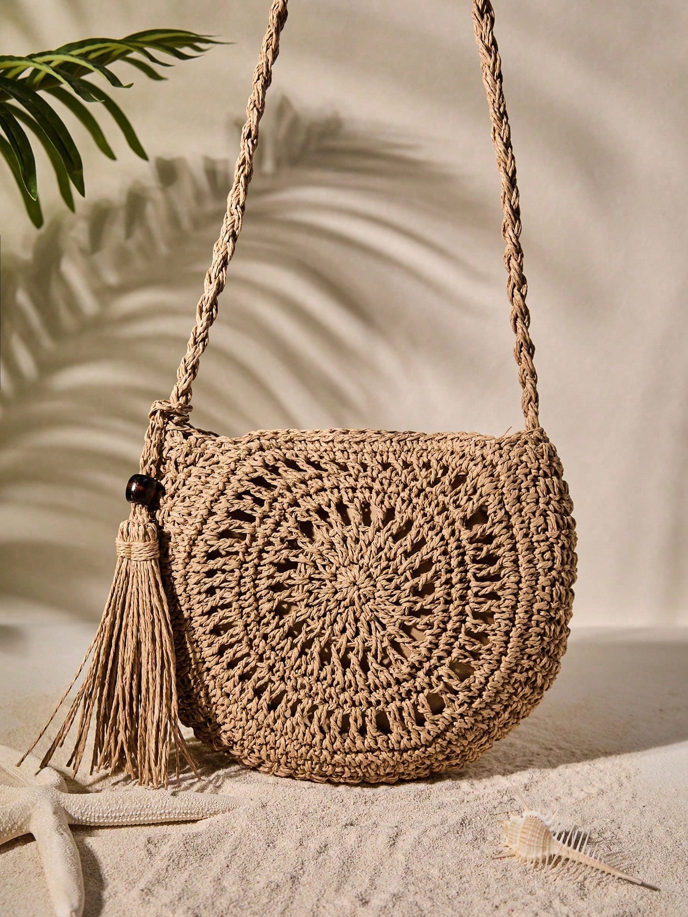 Oaoleer 1PC Small Straw Crossbody Bag,Handwoven Straw Shoulder Bag,Straw Crossbody Purse Woven Shoulder Bag With Tassels,Summer Bag For Women Beach