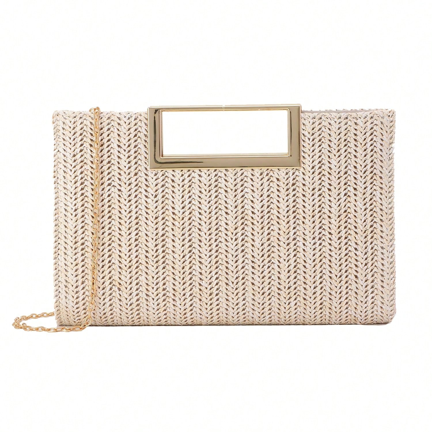 Oaoleer 1PC Top Handle Straw Clutch For Women Summer Clutch Straw Evening Bag Raffia Crossbody Purses Woven Beach Clutch