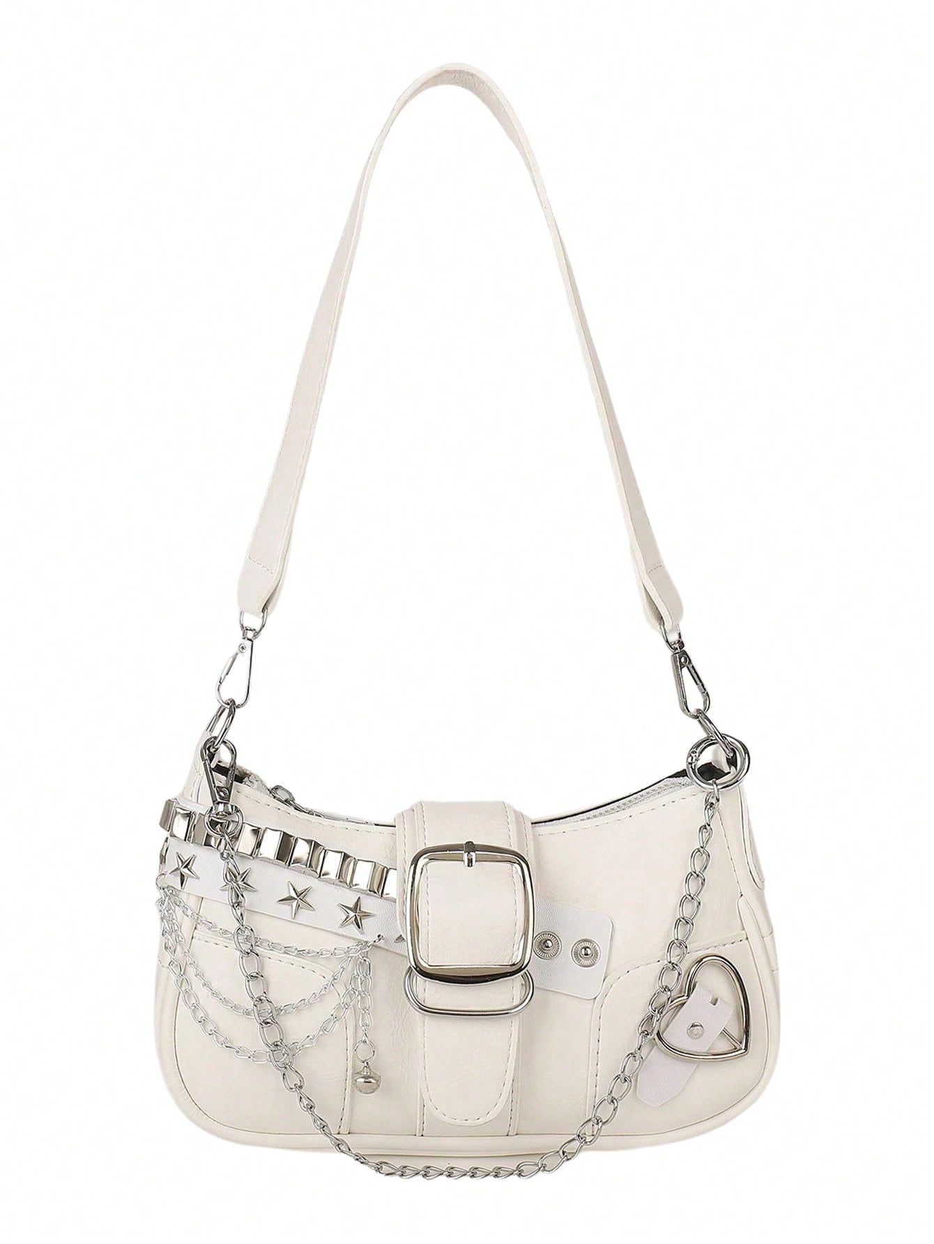 Oaoleer 1pc Women’s Y2k Star Embroidery Shoulder Bag Mini Chain Hobo Handbag Purses Fashion Versatile Star & Moon Design Unique Pink Chain Decor Crossbody Bag, Women Baguette Bag, Niche Design, Steampunk, Gothic, Lady Bag, Streetwear Chic, Music Festival, Party, Women’s Rocker Style Shoulder Bag Suitable For Girls, Celebrity-Inspired Printed Purse