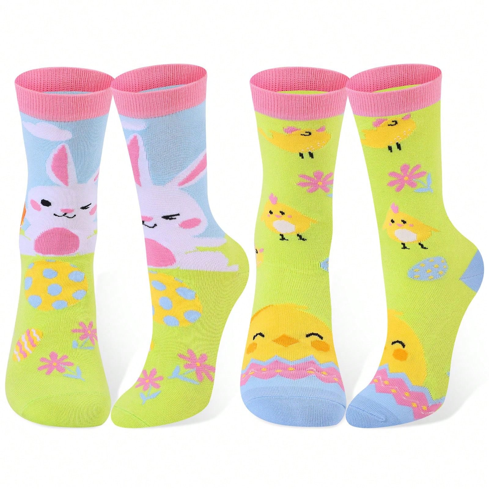 Oaoleer 2 Pairs Easter Socks For Women Girls, Funny Bunny Chick Egg Print Crew Socks, Novelty Cute Rabbit Animal Stocking Spring Holiday Gifts For Men Adult