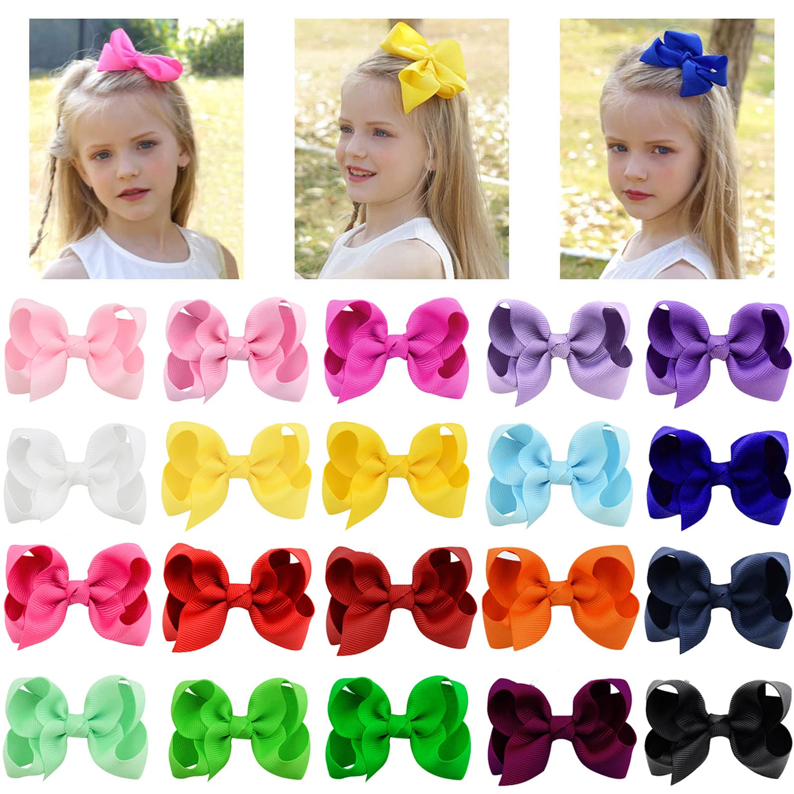 Oaoleer 20pcs 4inch 6inch Hair Bows For Girls, Grosgrain Ribbon Bows Alligator Clips, Cute Hair Accessories For Teen Infants Teen