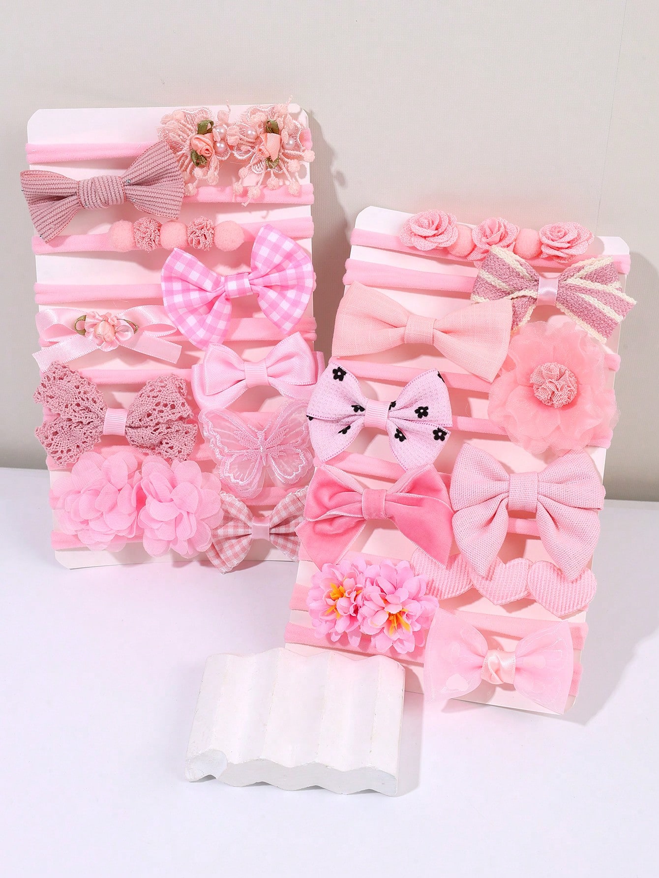 Oaoleer 20pcs Cute Baby Headband- Pink Bow Hair Ties – Elastic Bowknot Ribbon Ponytail Holders, Rubber Hair Accessories For Toddlers, Baby Girls, And Kids